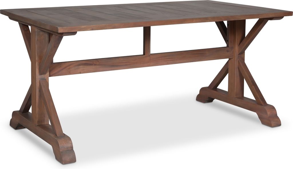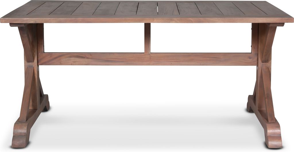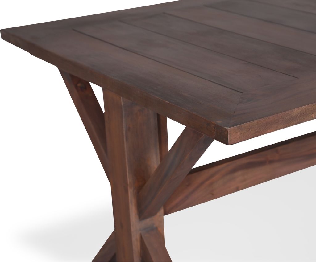 Robust matbord av mahogny, stabilt underrede. Bordet har en klasisk brun nyans och toppskiva av plank. Bordet finns även i längden 200 cm och i en rund variant.