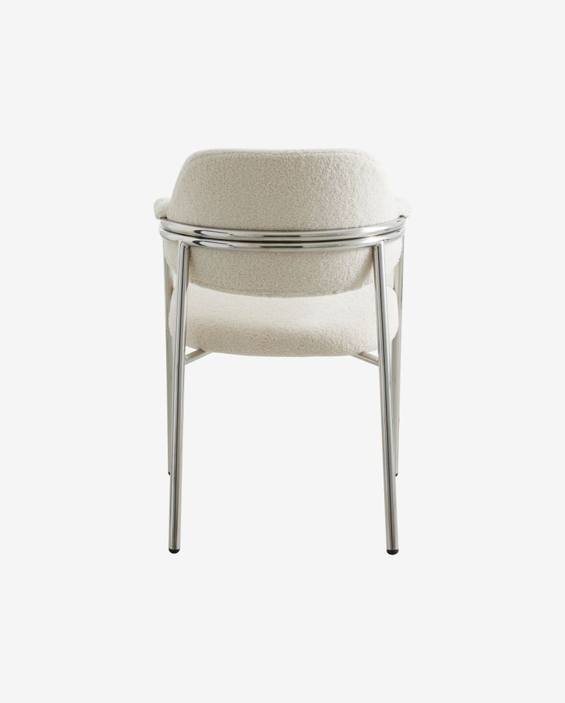 ALBERT-stol med metallram och off-white klädsel. En tidlös stol som kan användas vid matbordet eller som en statement-möbel i din inredning. ALBERT är ett klassiskt och elegant val. Med sin enkla, smala ram kombinerad med tygens mjukhet erbjuder stolen perfekt komfort. En stilfull möbel som smidigt förenar funktion och design. Med sin bekväma stoppning och praktiska armstöd är ALBERT idealisk både för att samlas runt bordet och för att erbjuda en extra sittplats åt gäster.