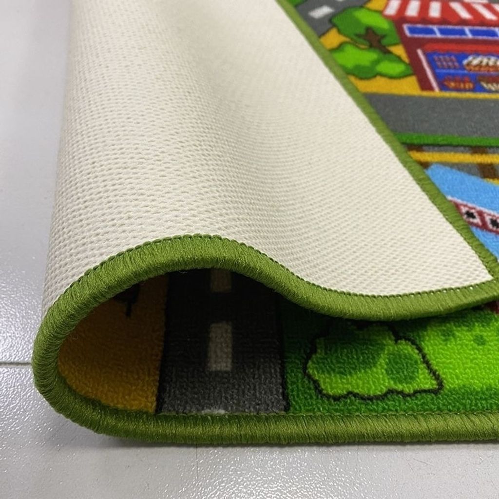 Lekfull vägmatta till barnens lekrum. Tillverkad i polyester med latex på undersidan som halkskydd.