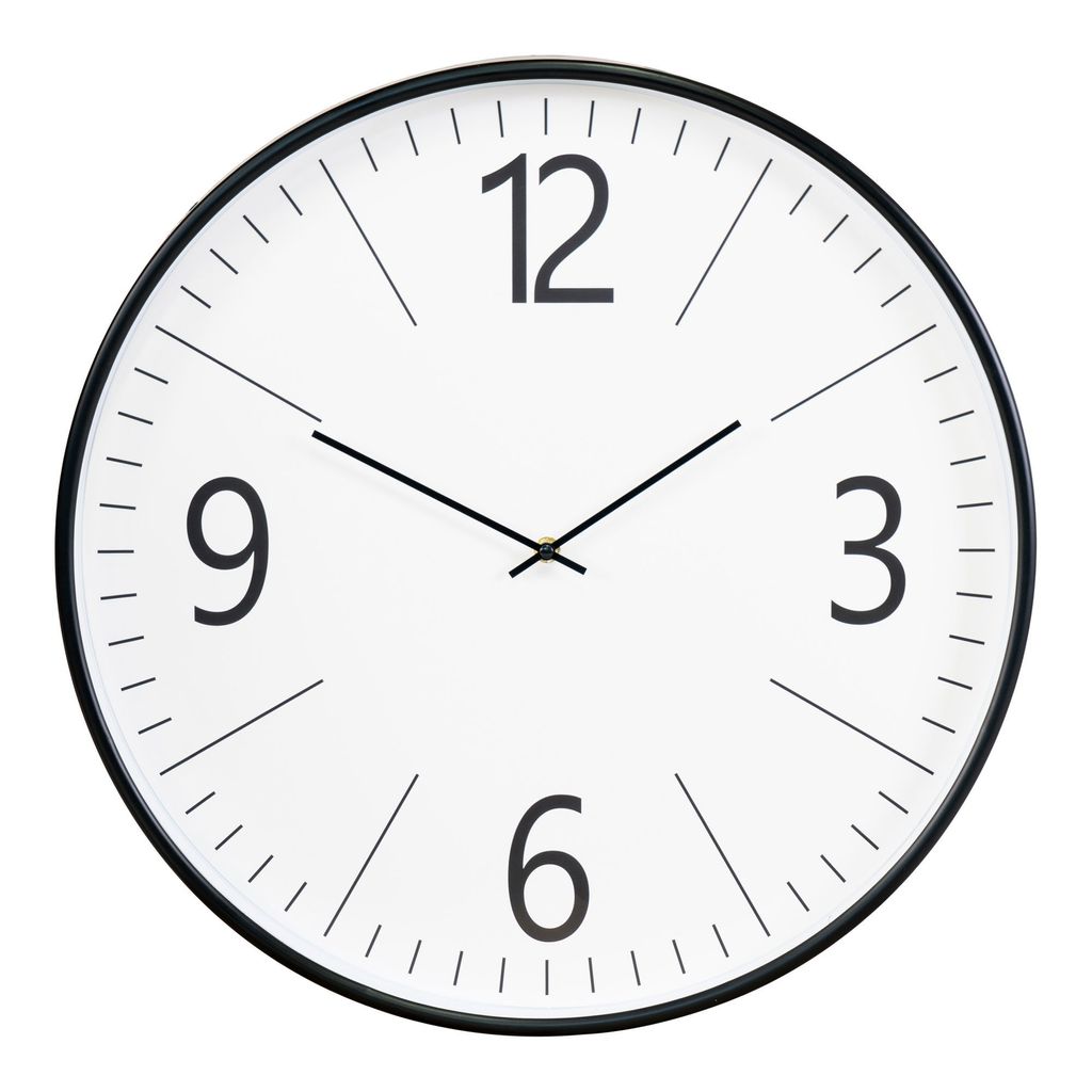 Väggklocka, plast, svart och vit, tyst urverk Ø51 cm