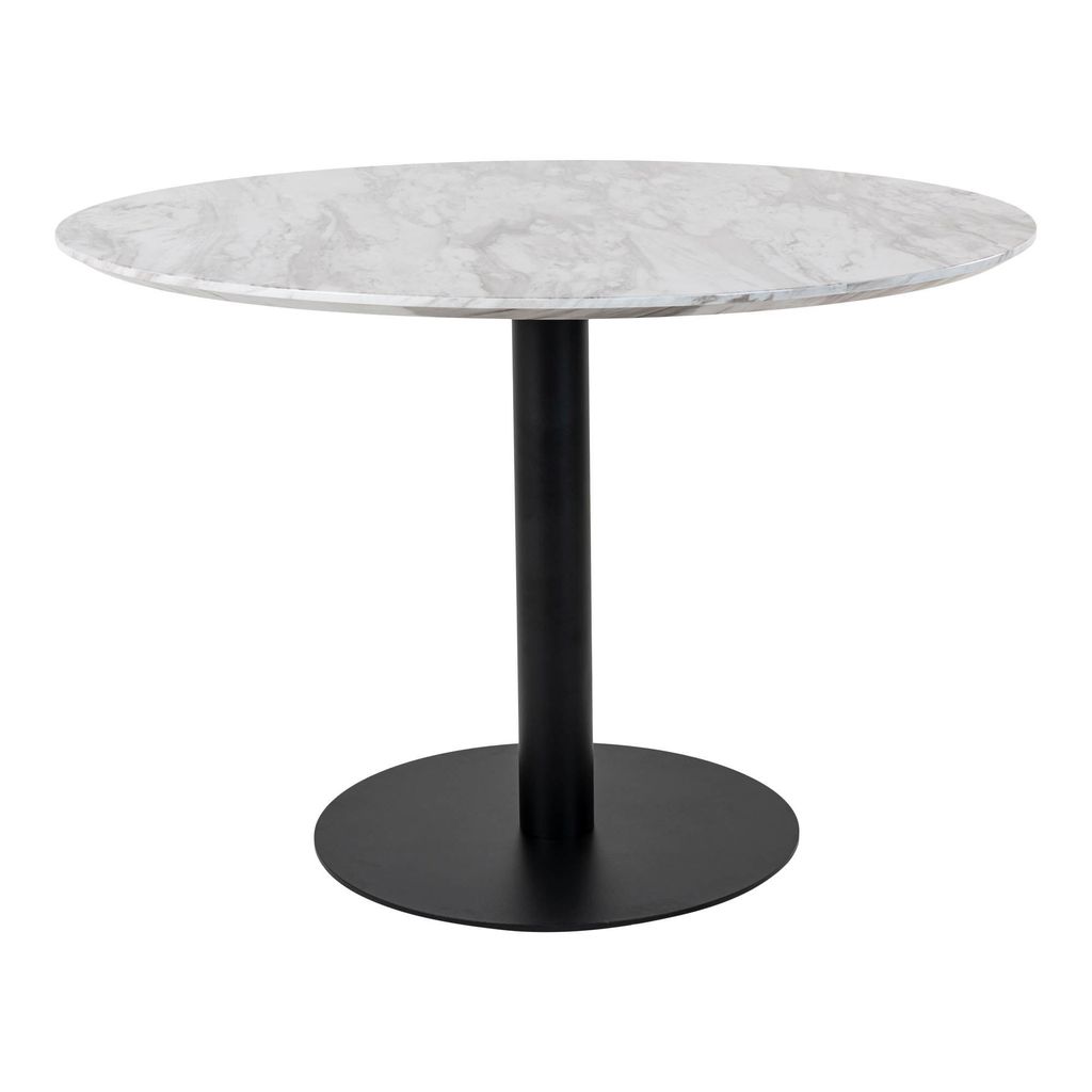 Matbord, skiva i marmorlook, vit, svart underrede ø110x75 cm