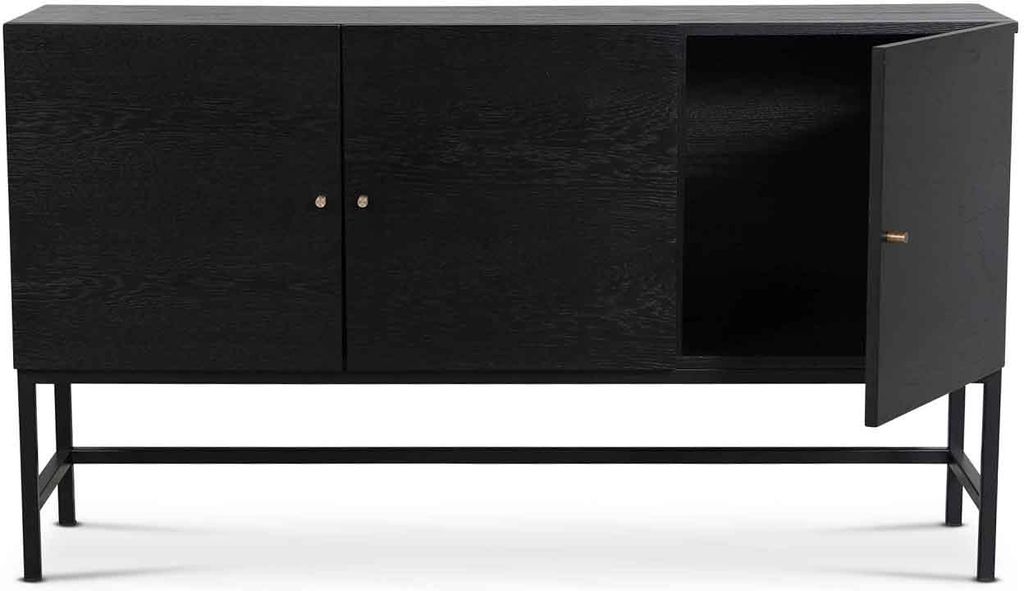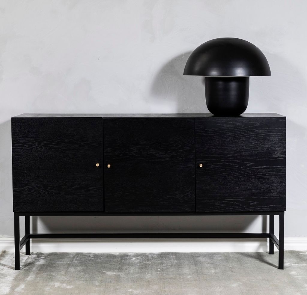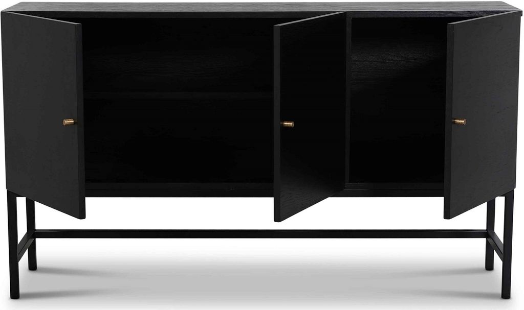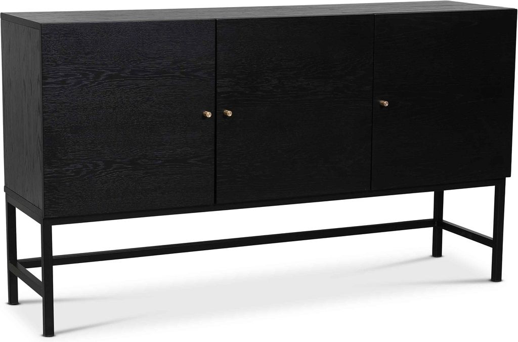 Skandinavisk design med slimmade linjer. Carl sideboard i svartbetsad ekfanér med handtag i matt mässing. 3 dörrar med justerbara hyllplan.
