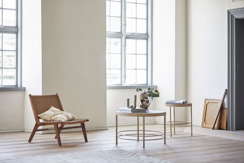 - Kombinationen av teak och papperssnöre ger både hållbarhet och ett mjukt uttryck.
