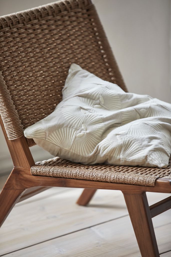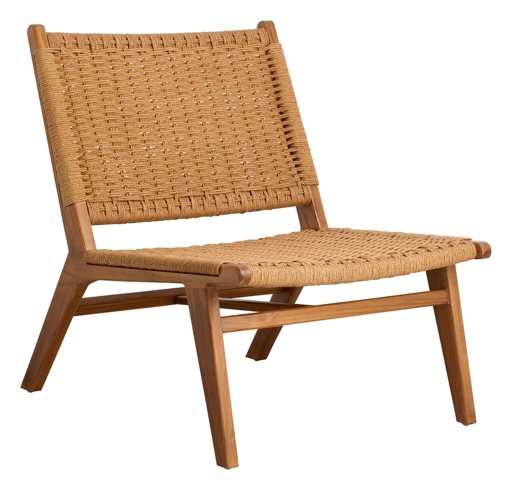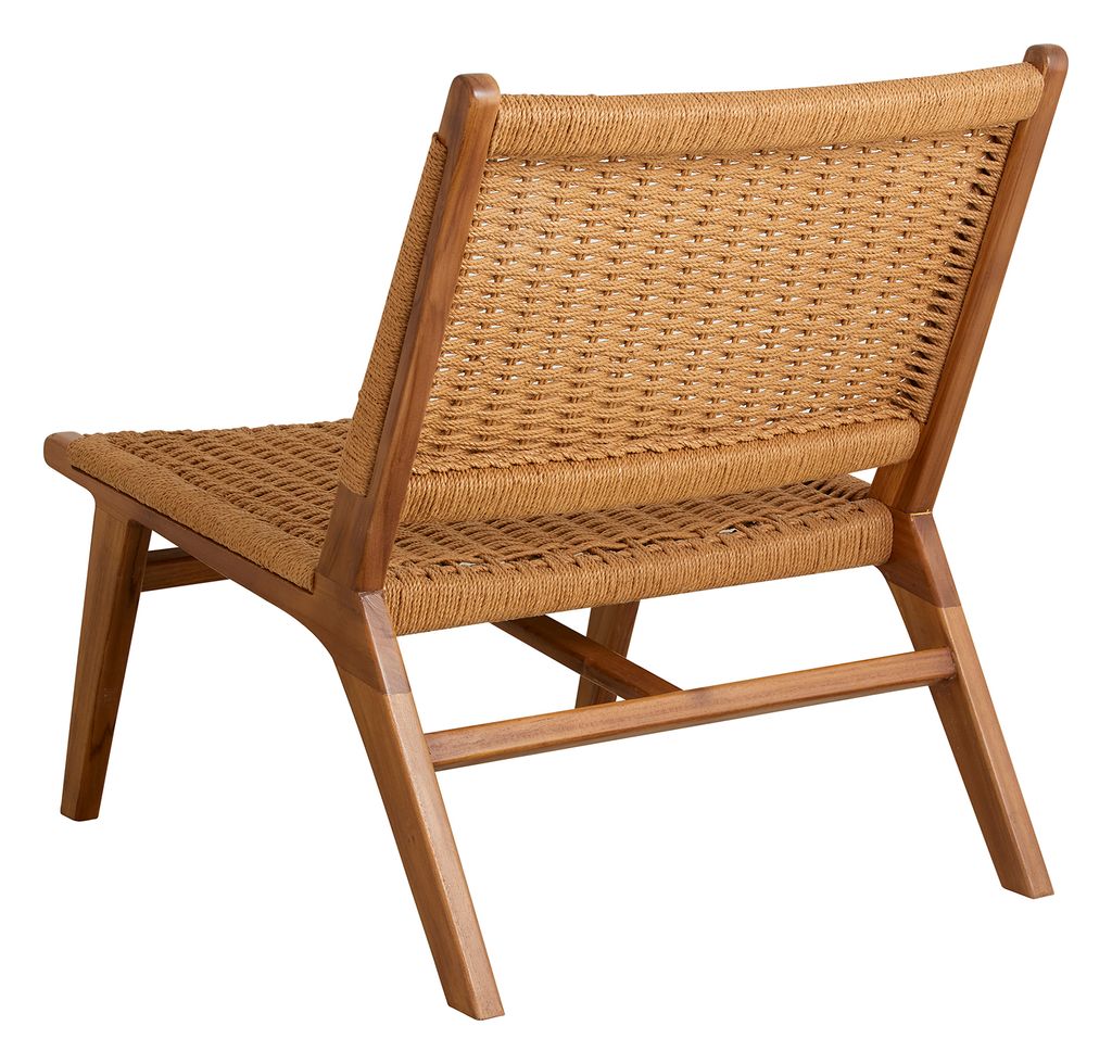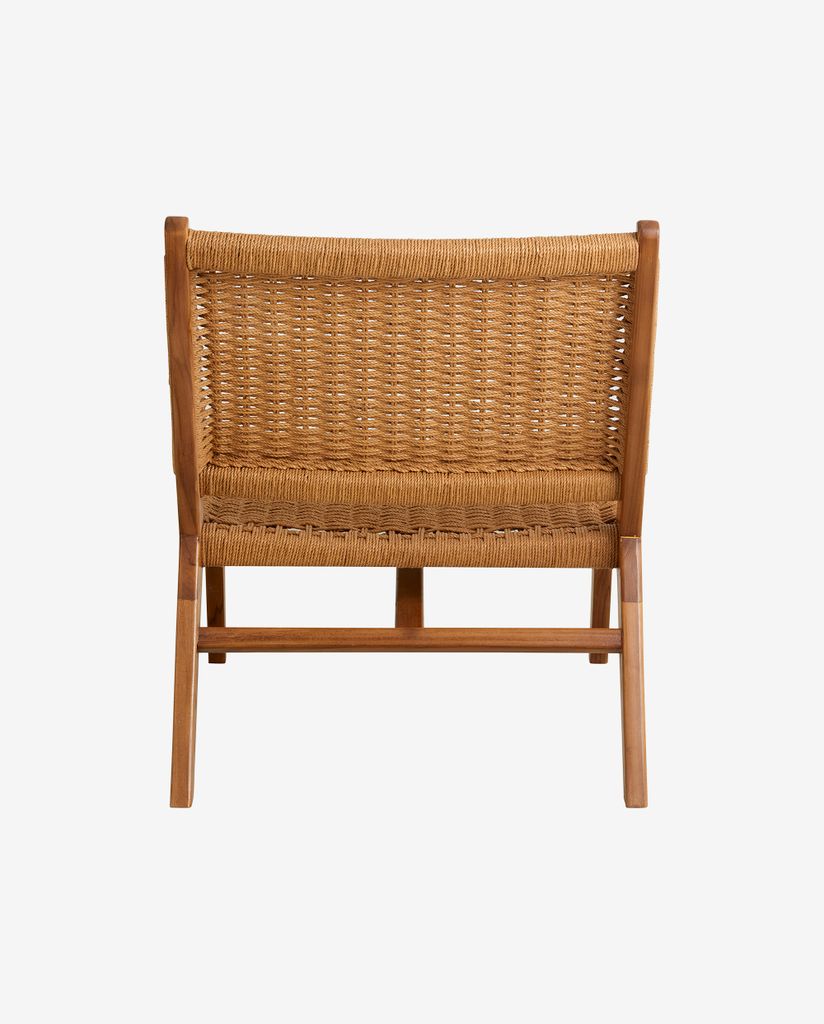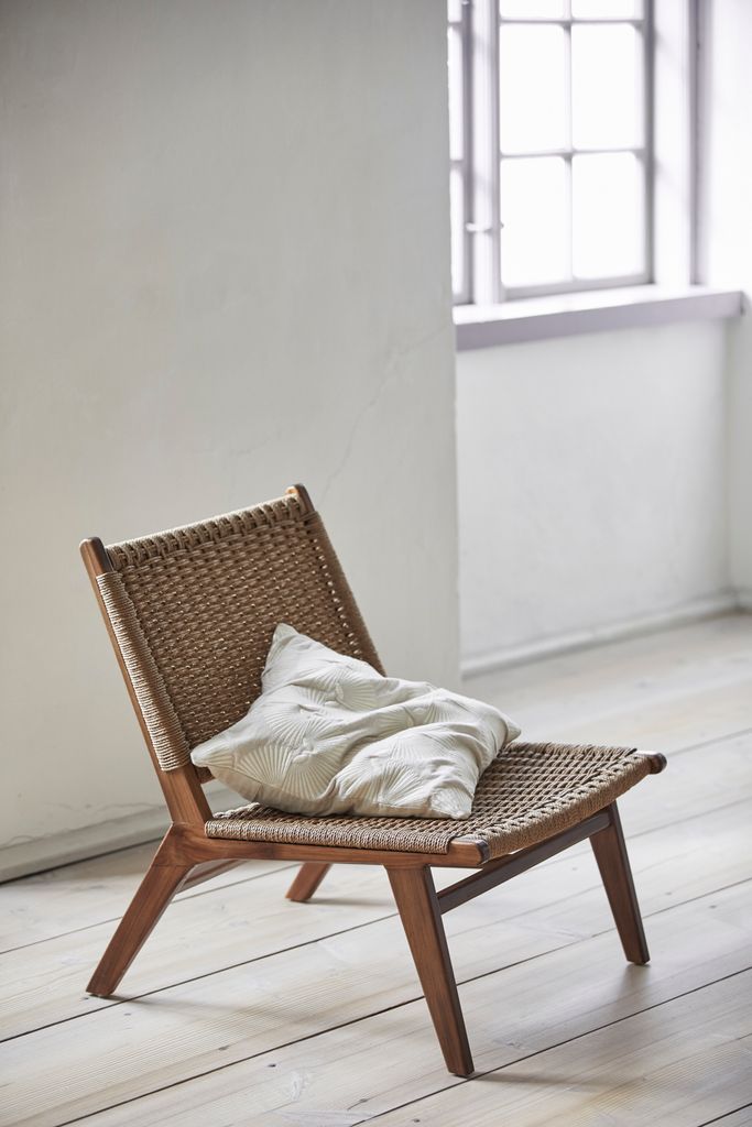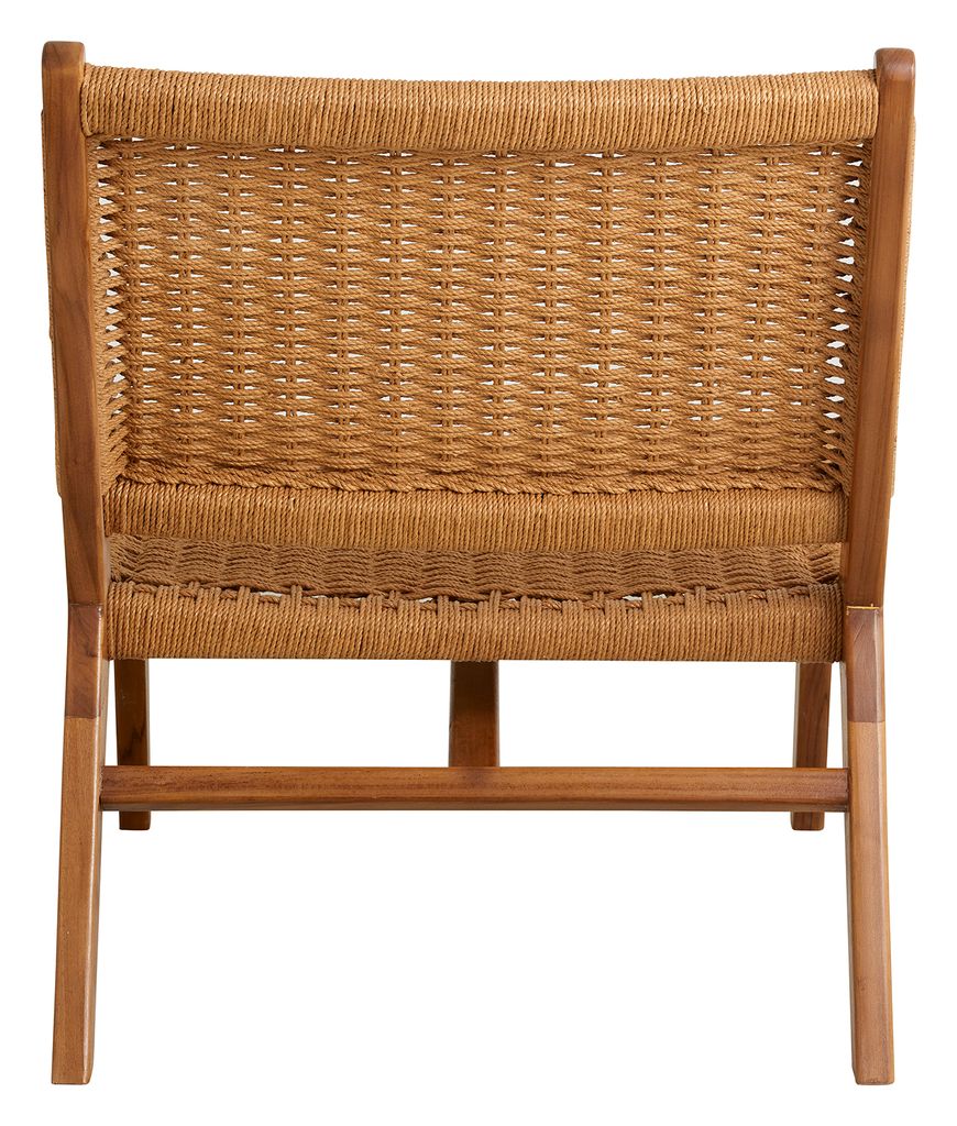 Tidlös och stilren sittmöbel som passar perfekt i loungemiljöer. Den är designad för att ge både komfort och ett elegant uttryck. Denna stol är delvis handgjord och tillverkad av naturliga material som teak och papperssnöre. Varje produkt är unik, och därför kan små variationer i färg, finish och storlek förekomma. Dessa detaljer bidrar till stolens genuina och unika känsla.