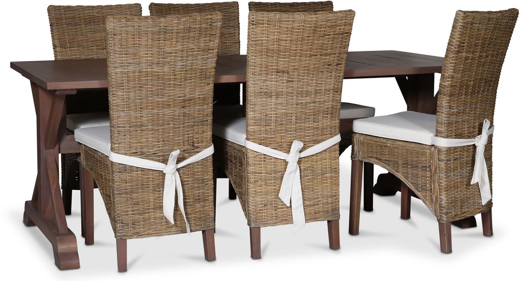 Serie Croco innehåller produkter tillverkade av rotting och mahogny. En klassisk New england stil. Robust matbord av mahogny, stabilt underrede. Bordet har en klasisk brun nyans och toppskiva av plankliknande.