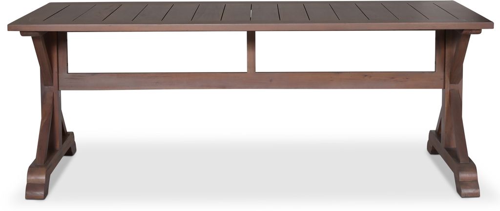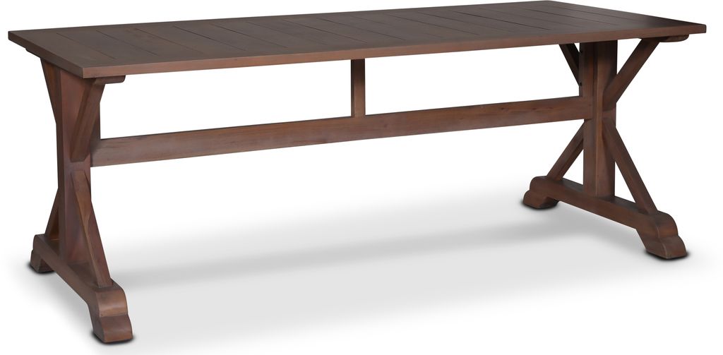 Robust matbord av mahogny, stabilt underrede. Bordet har en klasisk brun nyans och toppskiva av plankliknande. Bordet finns även i 160 cm och i en rund variant.