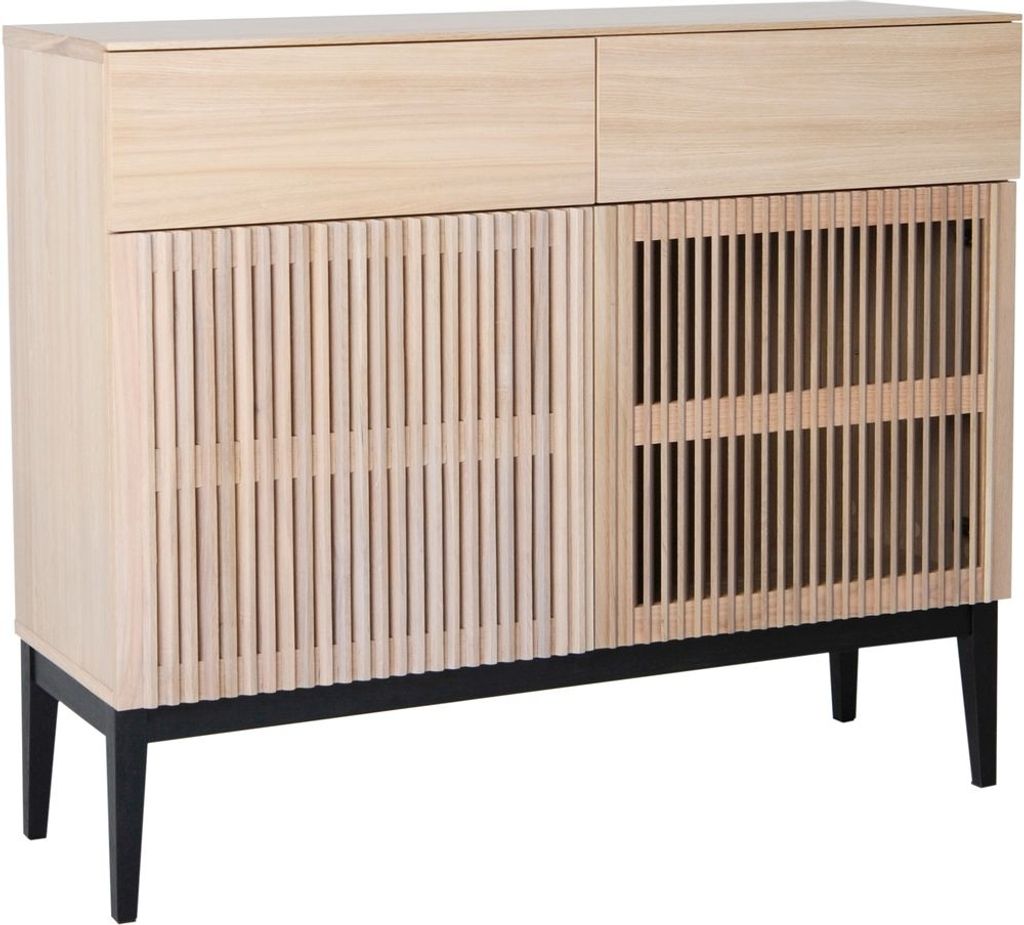 Beskrivning av Darell lågt vitrinskåp - Askfanér/svart