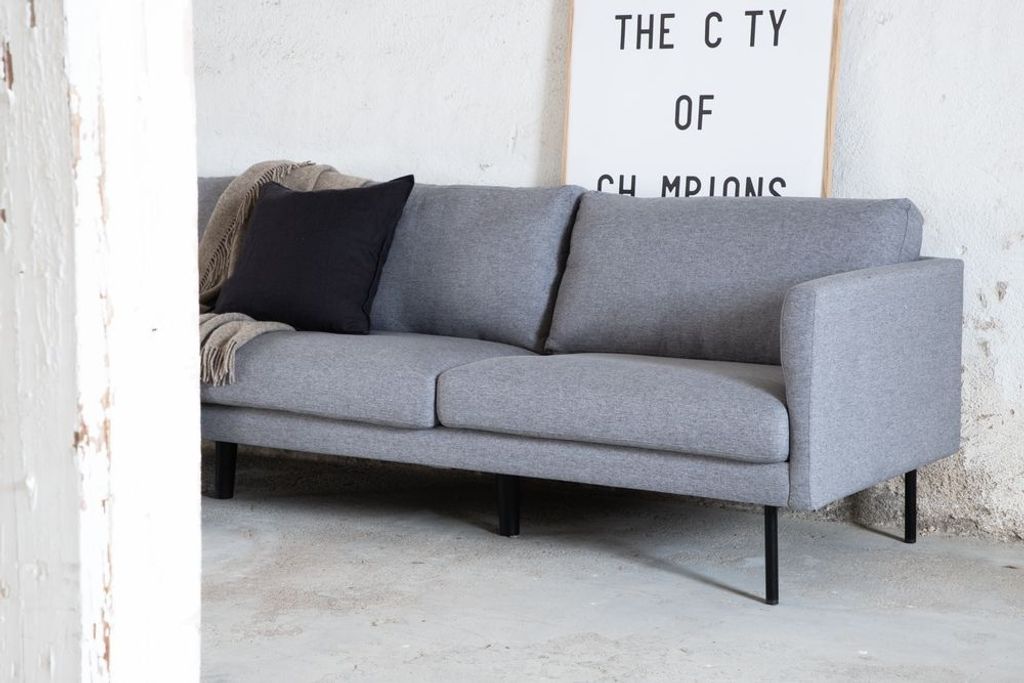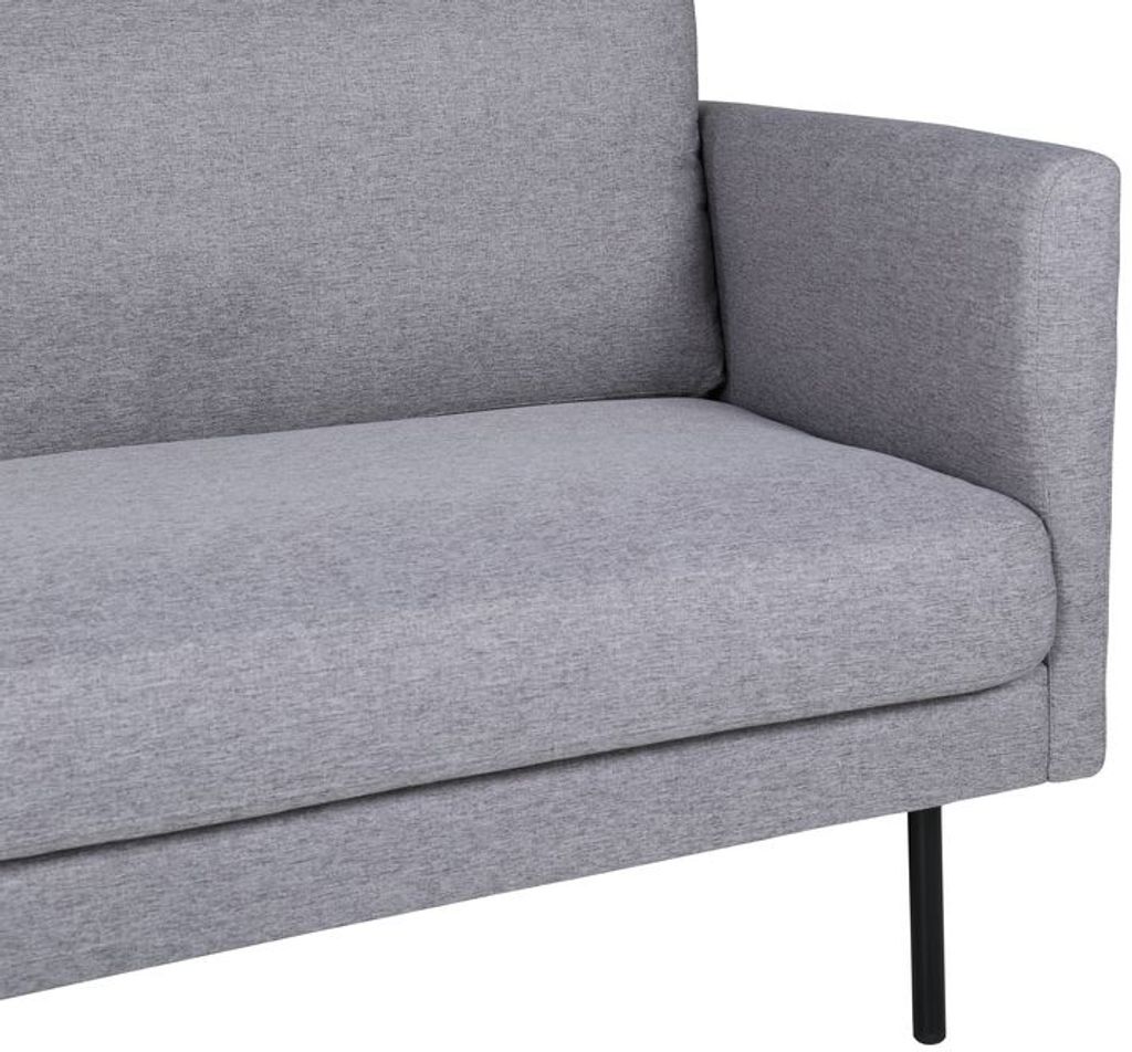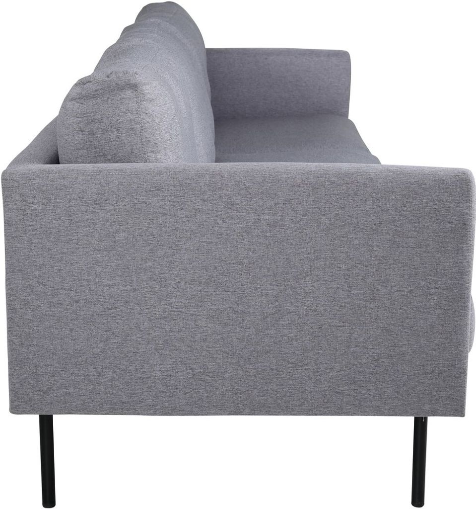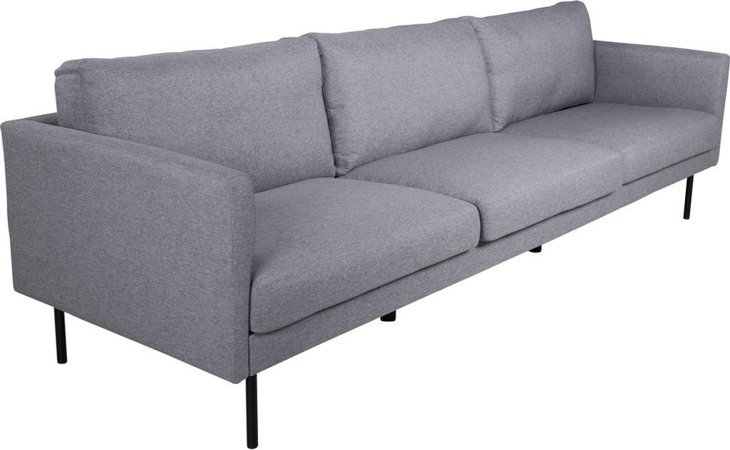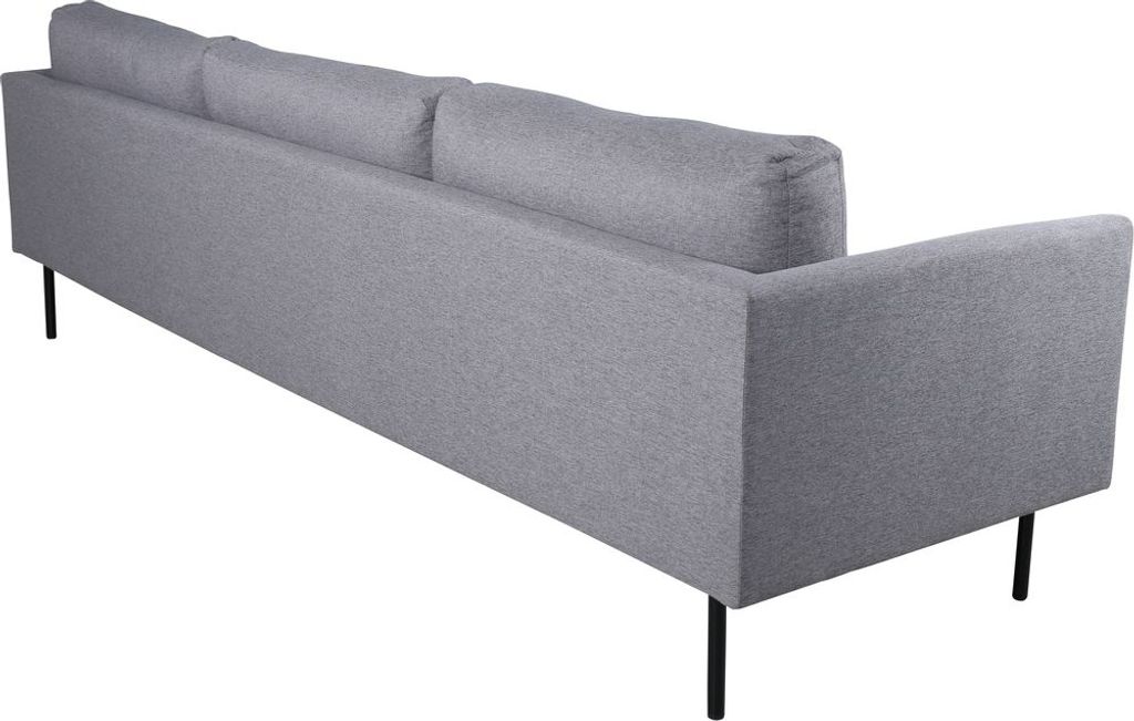 Eden är en bekväm och stilsäker 3-sits soffa. Soffan är klädd i ett grått mjukt och tåligt tyg. Soffans ben är i svart metall. Löstagbar klädsel på sitt- och ryggdynor.