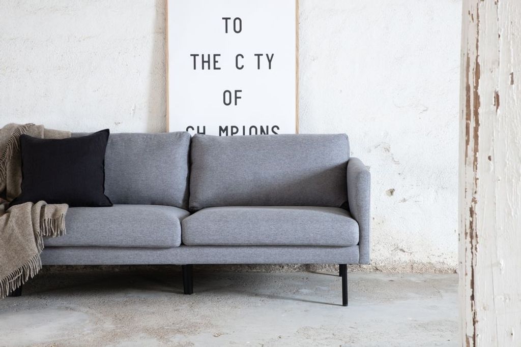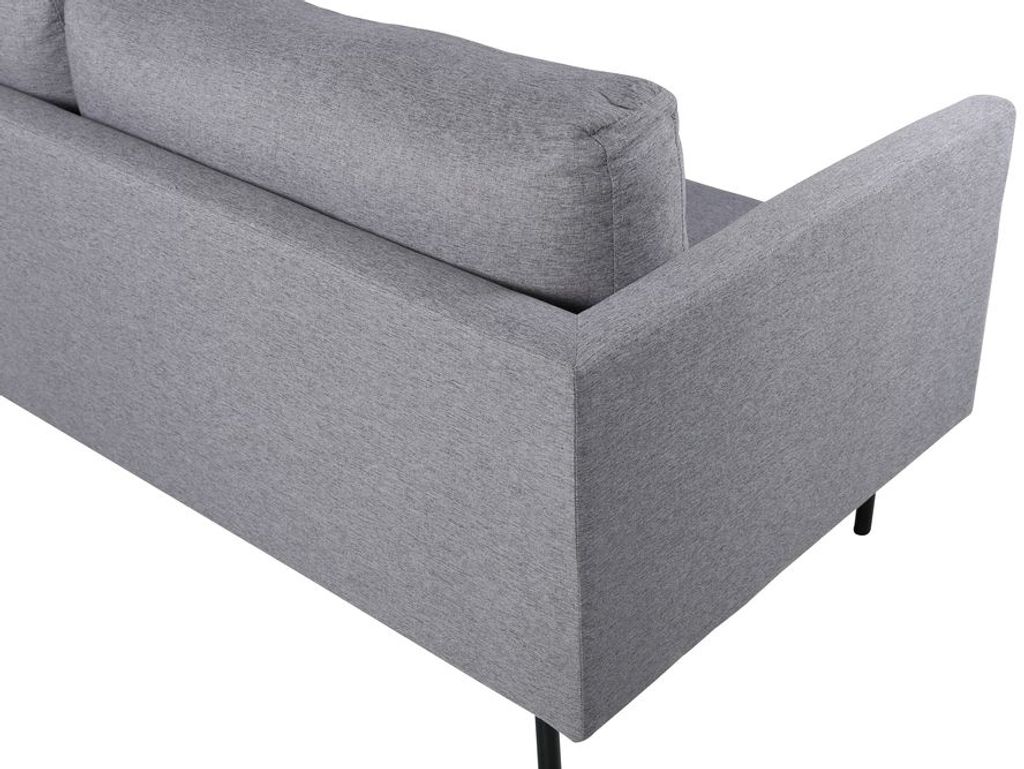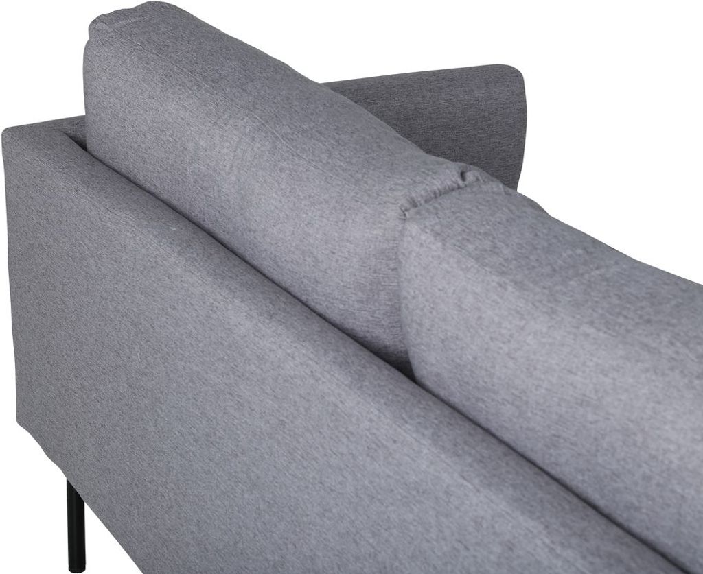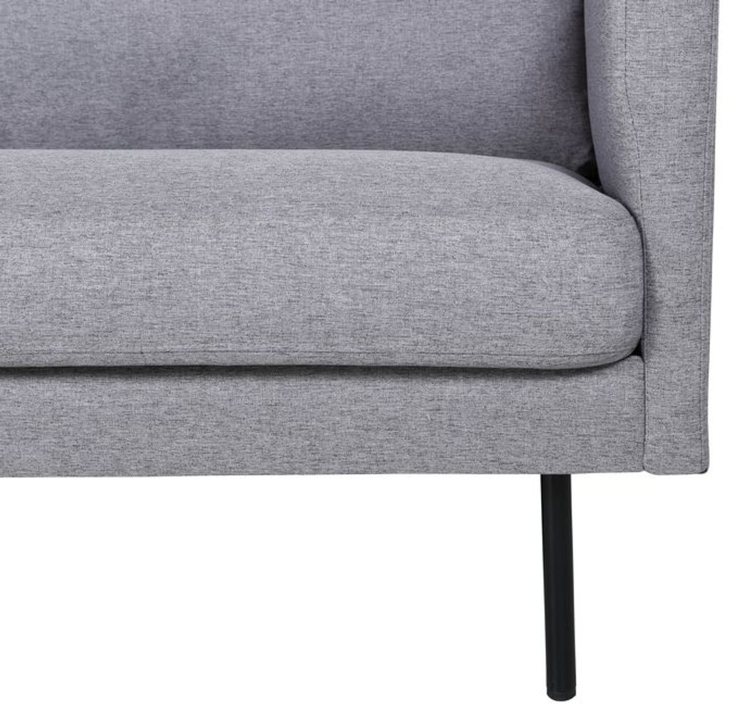 Eden är en bekväm och stilsäker 3-sits soffa. Soffan är klädd i ett grått mjukt och tåligt tyg. Soffans ben är i svart metall. Löstagbar klädsel på sitt- och ryggdynor.