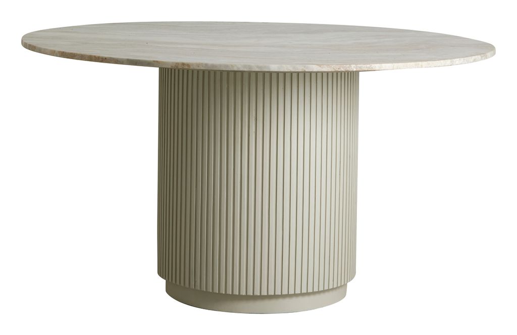 ERIE matbord tillverkat av trä och marmor. ERIE har en unik bordsskiva av marmor med ett vackert färgspel i naturliga nyanser. Marmorns basfärg är elfenben, med färgskiftningar i nyanser av sand, beige och brunt. Färgen och utseendet på marmorn kan variera eftersom marmor är ett naturmaterial och kommer med naturliga variationer. Små ojämnheter på ytan är inte defekter utan kan uppstå på grund av materialets mjukhet. Linjer kan också vara synliga, vilket är naturliga ådringar i marmorn och kan inte undvikas.