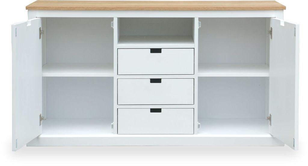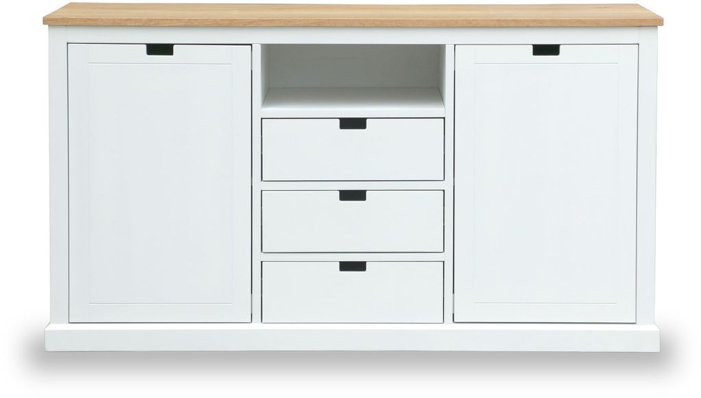 Fårö sideboard i massiv akacia och MDF, med toppskiva i oljad ekfanér. Sideboarden har 2 skåpdörrar och 3 lådor – en både stilren och praktisk möbel. Finns även i andra färger i samma serie.