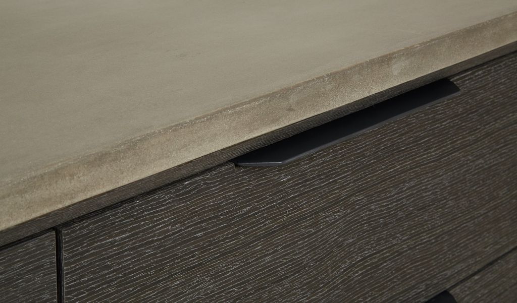 Beskrivning av Ghost skänk i mörkbetsad ek med betongskiva