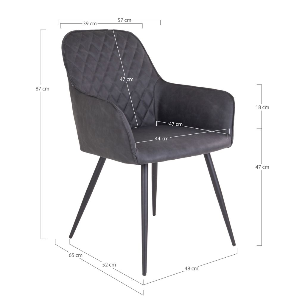 Harbo matstol - Matstol i PU, mörkgrå med svarta ben, HN1221