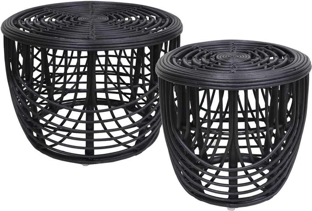 Set bestående av 2 soffbord i svart rotting. Finns även i naturfärgat och brunt i samma serie.