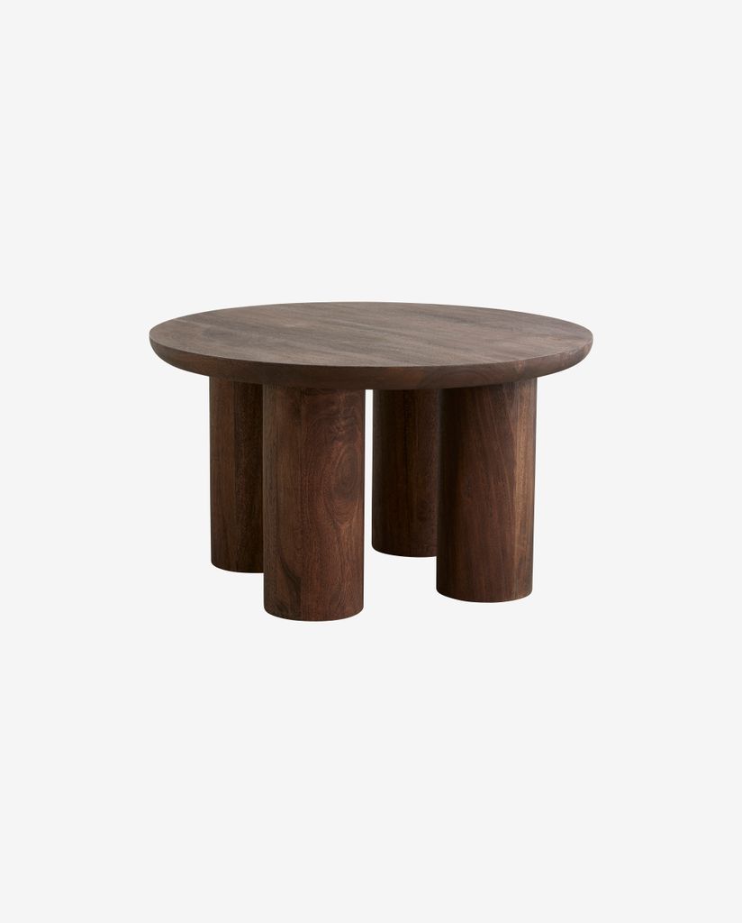 HELIN soffbord är ett elegant träbord tillverkat av mangoträ med en mörkbrun betsad färg. Designen finns även som sidobord.