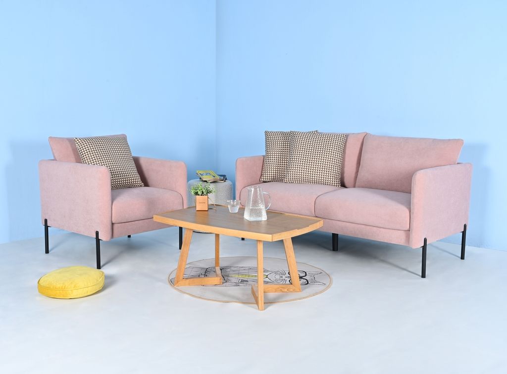 Beskrivning av Kingsley fåtölj i rosa sammet
