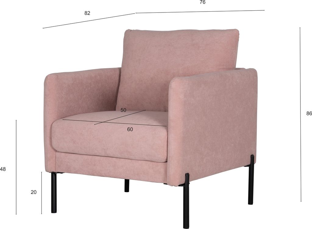 Kingsley är en stilsäker fåtölj med snygga detaljer. Smala, höga metallben i svart pulverlackad metall. Sittdyna med kallskumkärna och fibervadd för bästa sittkomfort och lång hållbarhet. Smala moderna armstöd.