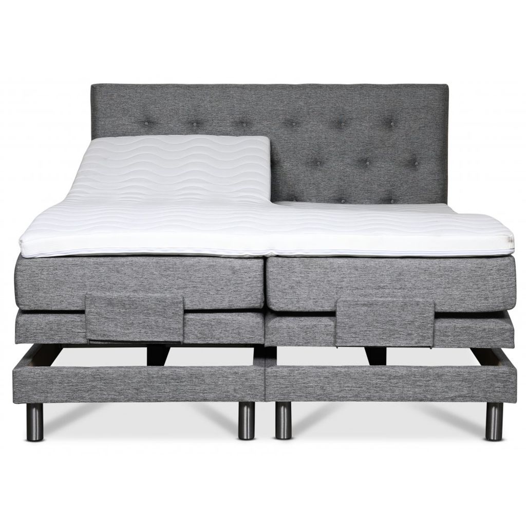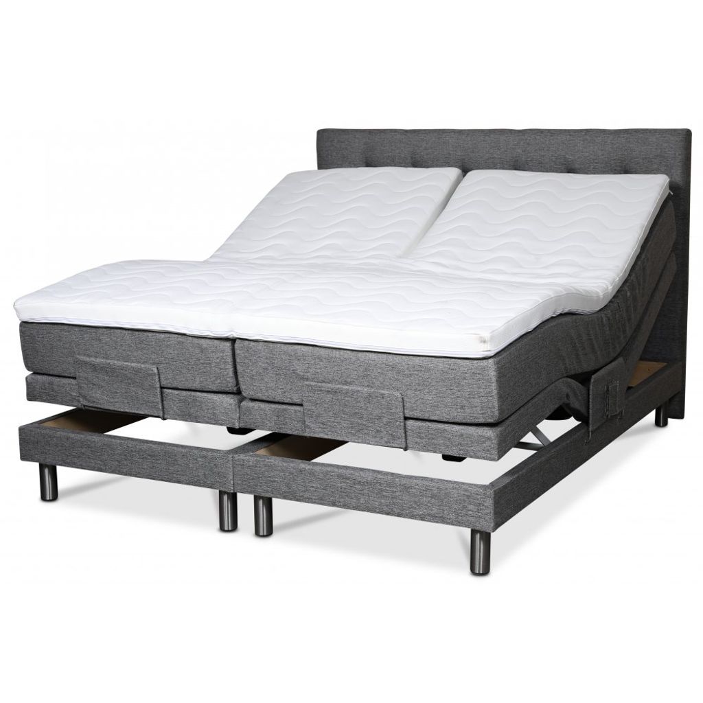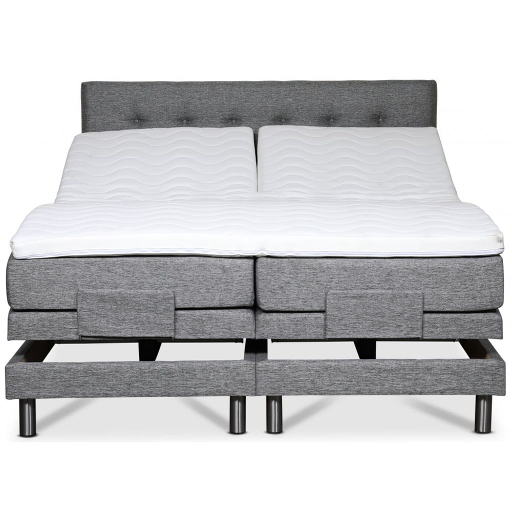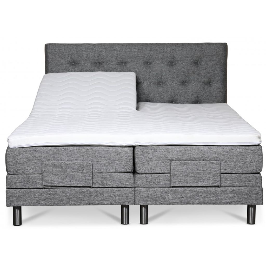 Klara ställbar säng levereras med en 8 cm hög exklusiv bäddmadrass i kallskum. Sängen är klädd i ett grått slitstarkt tyg (Rocco GRI281).