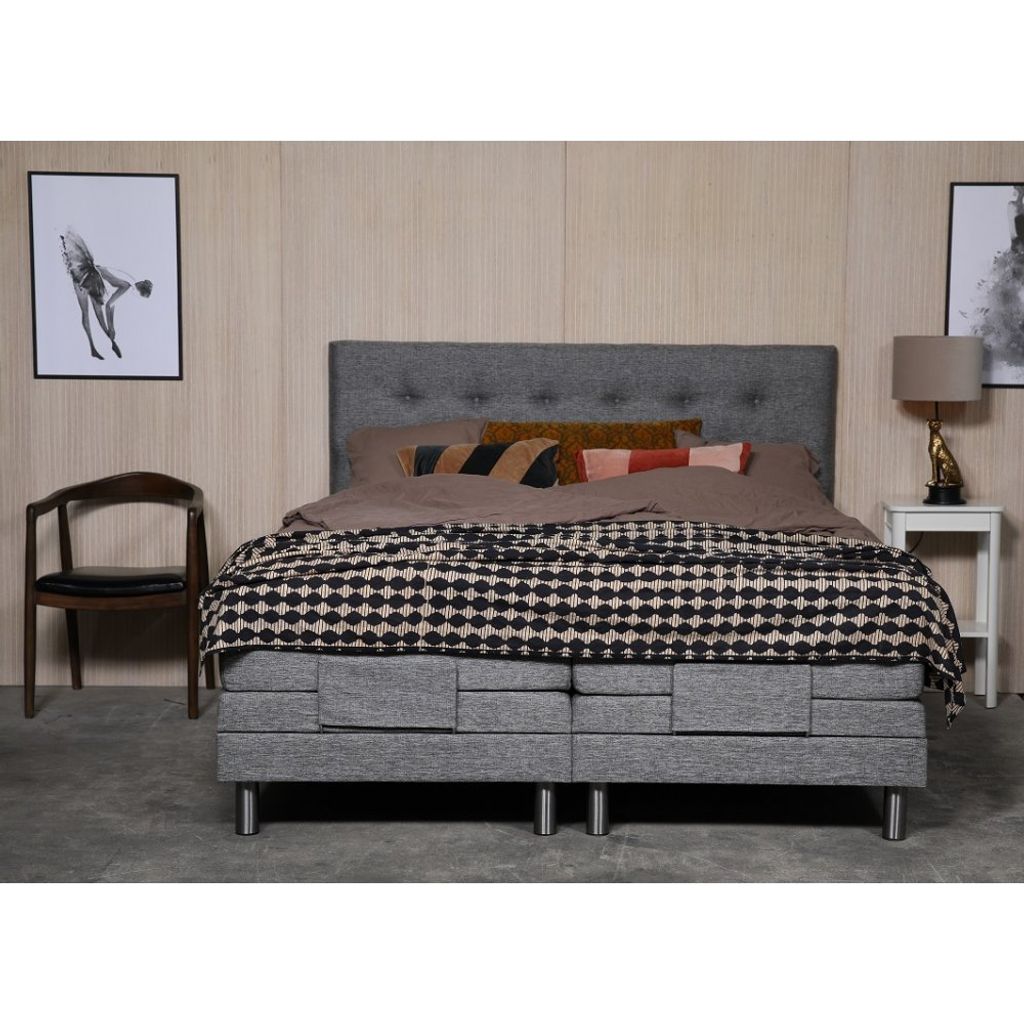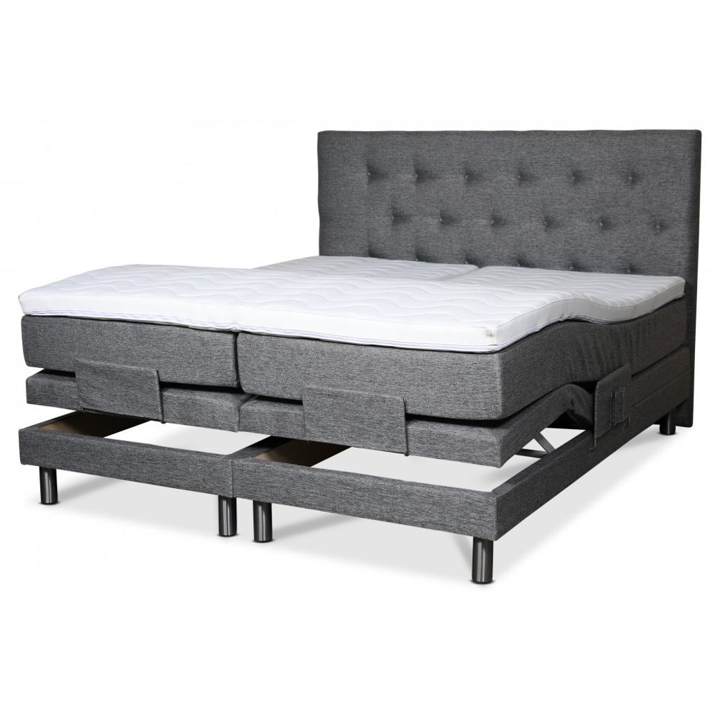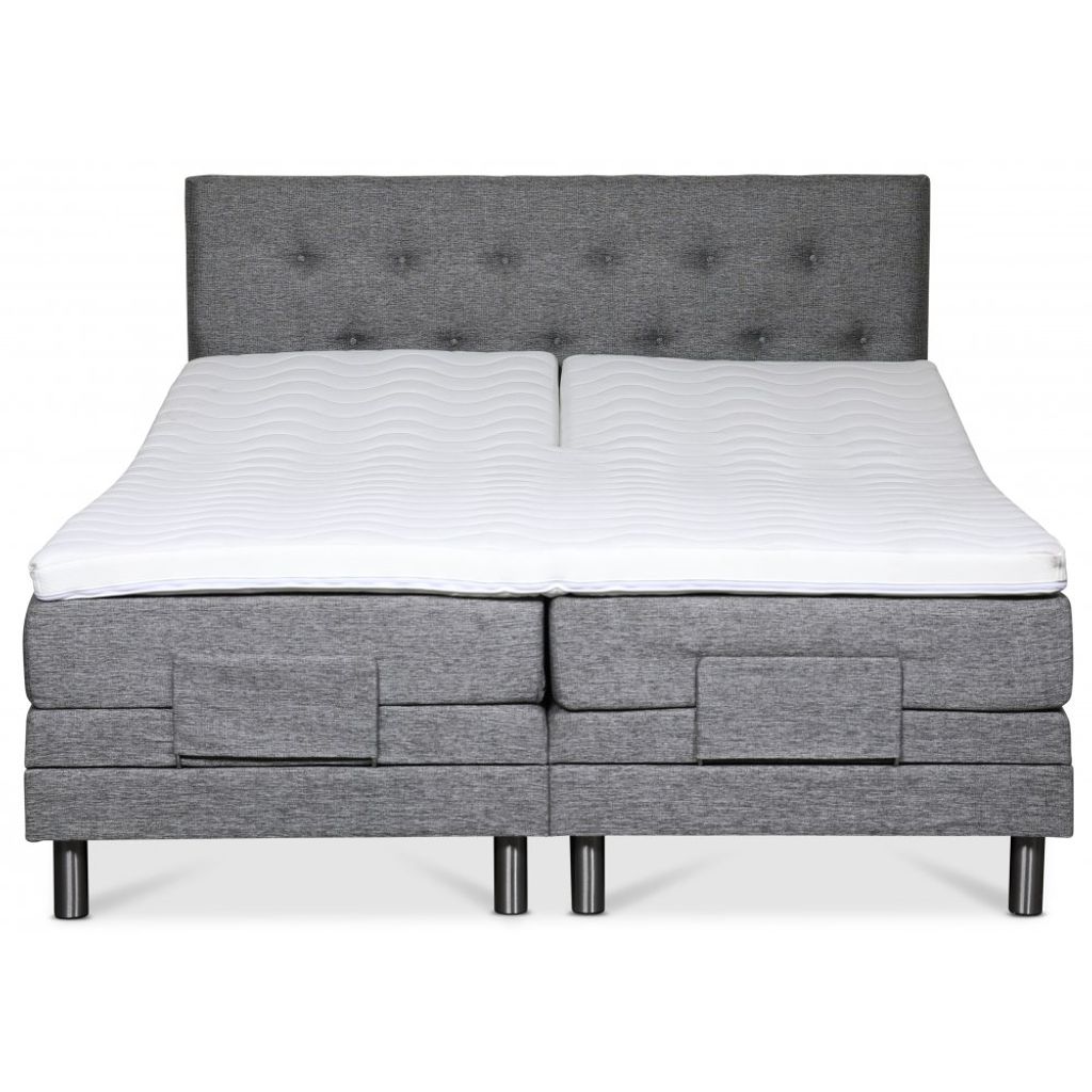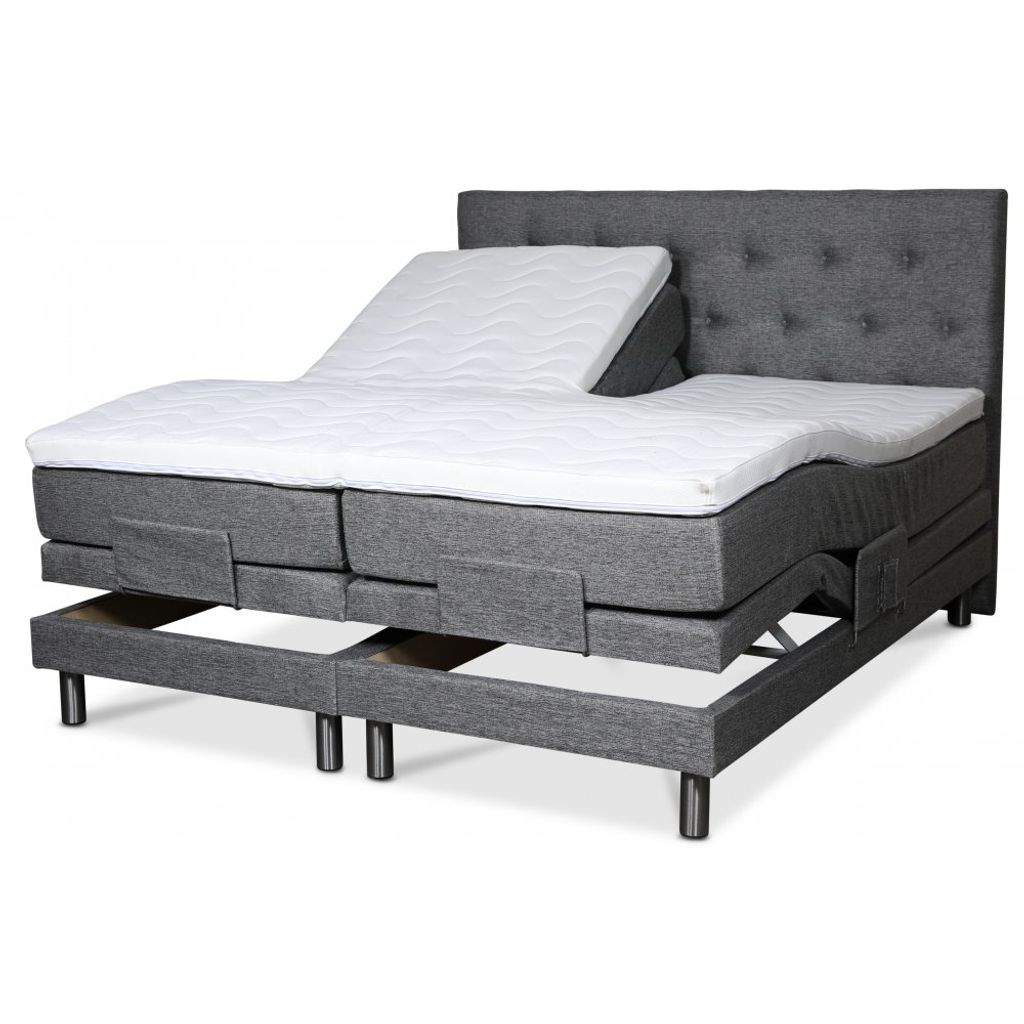 Klara ställbar säng levereras med en 8 cm hög exklusiv bäddmadrass i kallskum. Sängen är klädd i ett grått slitstarkt tyg (Rocco GRI281).