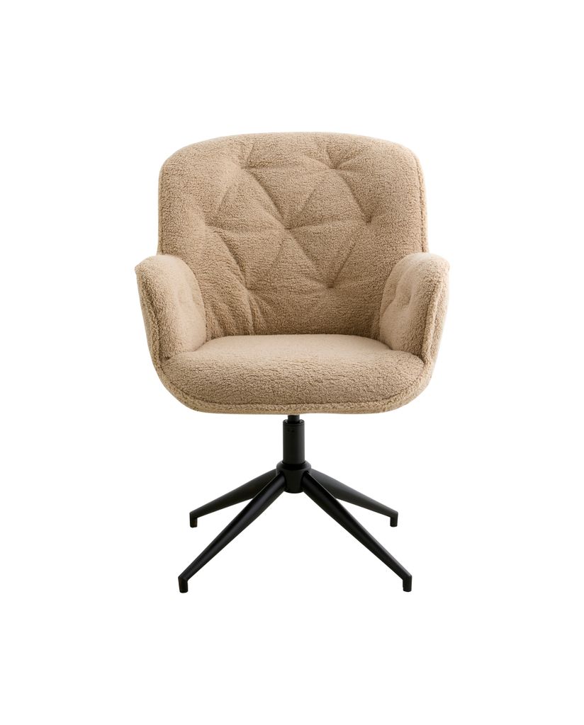 LEA kontorsstol är tillverkad av bouclé-tyg med en bas i svart metall. Denna bekväma och stilrena stol kombinerar komfort, funktionalitet och design på ett elegant sätt. Sitsen är vadderad med högdensitetsskum för optimal sittkomfort och kan rotera 360 grader för maximal flexibilitet.