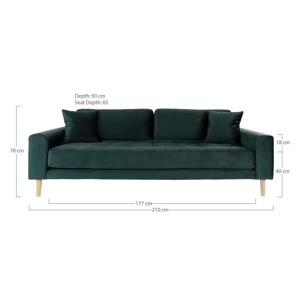 3-sitsig soffa, mörkgrön sammet med två kuddar och ben i naturträ, HN1006