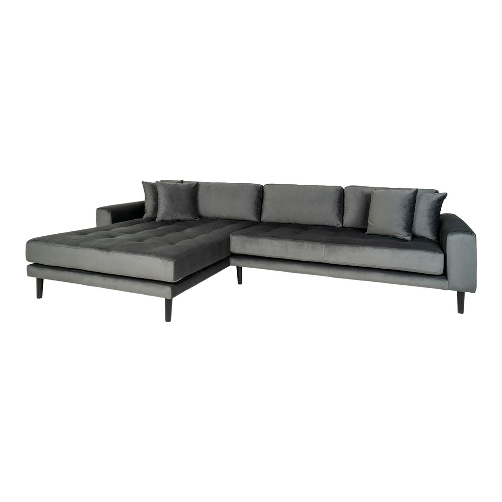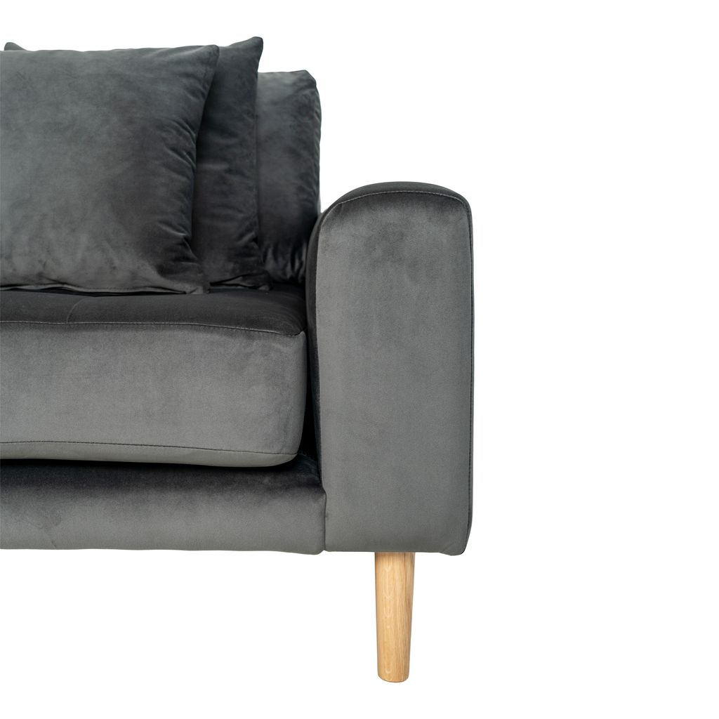 Lido Loungesoffa - Loungesoffa, vänsterställd i mörkgrå sammet med fyra kuddar och ben i naturträ, HN1013