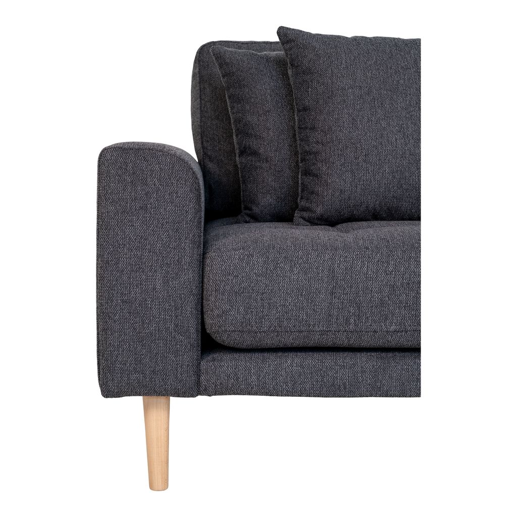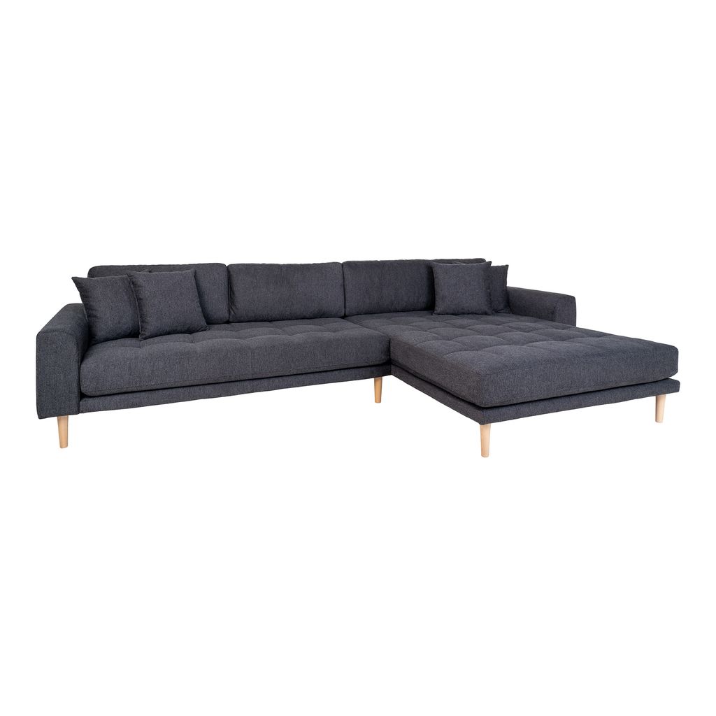Lido Loungesoffa - Loungesoffa, högerställd i mörkgrått med fyra kuddar och ben i naturträ, HN1045