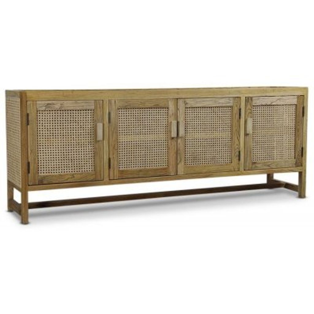 Sideboard Sideboard med stomme av massiv alm och dörrar i naturfärgad rotting. En rymlig möbel med gott om förvaringsplats bakom de fyra dörrarna.