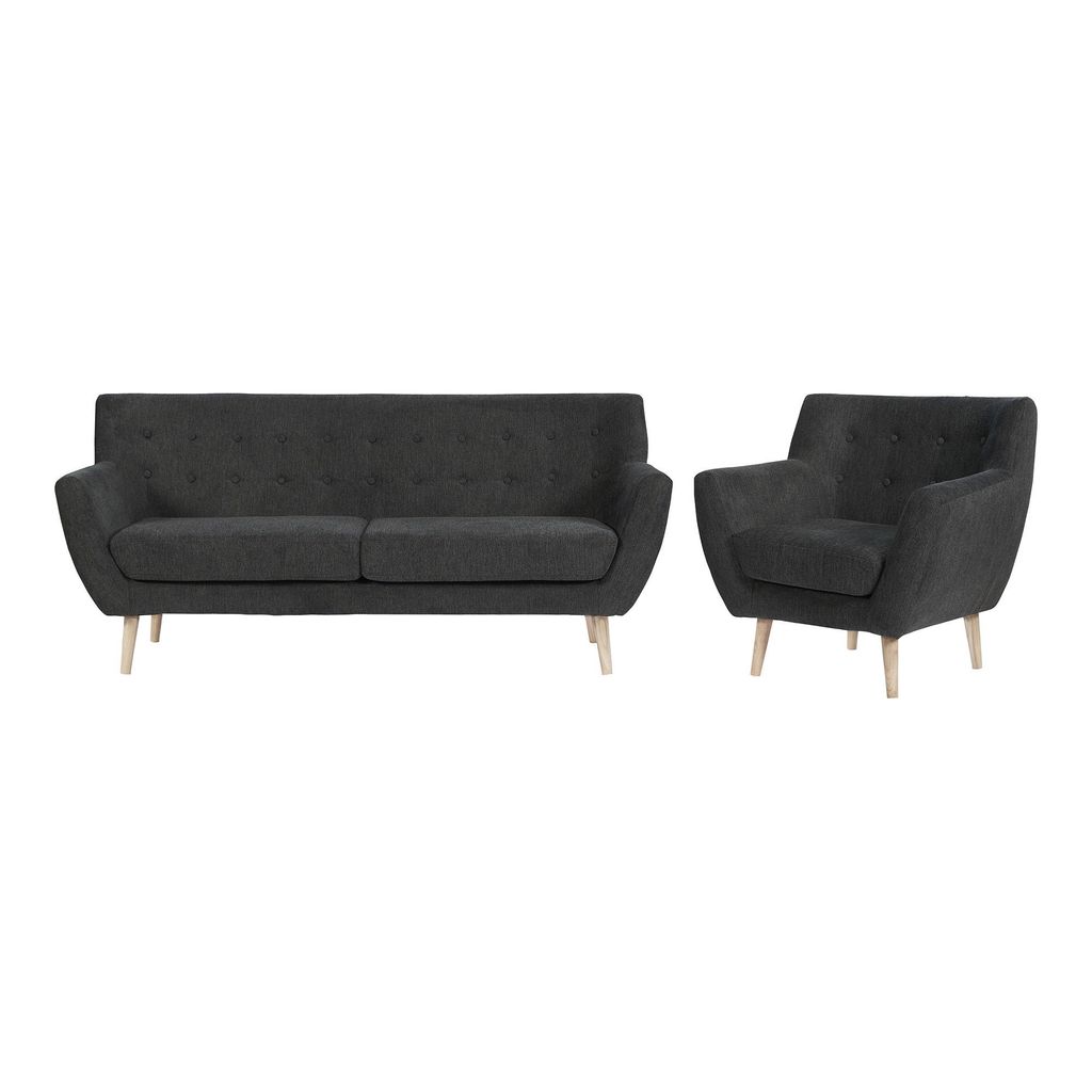 Monte 3-personers soffa - 3-personers soffa, mörkgrå med ben i naturligt trä, HN1045