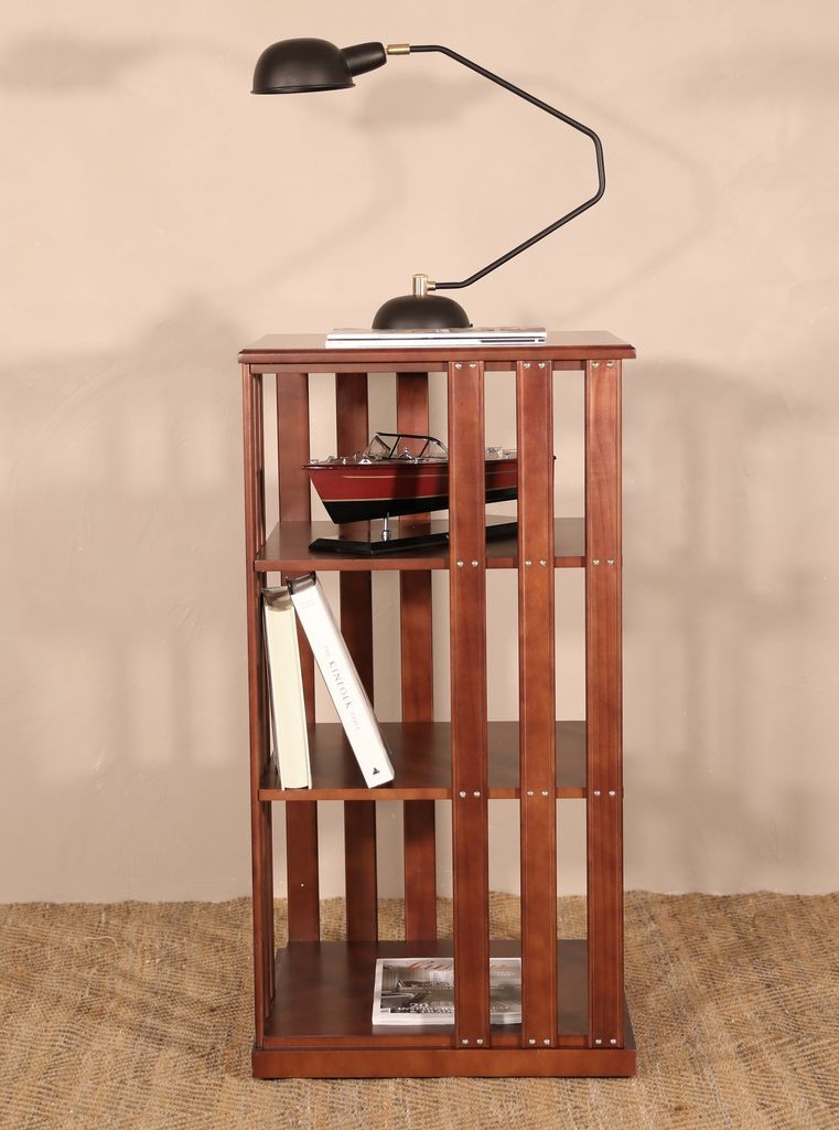 En klassisk och tidlös karusellhylla, eller "boksnurra" som den också kallas. Bokhyllan har 3 hyllplan för praktisk förvaring och är tillverkad av trä i mahognyfinish. Boksnurran passar perfekt på flera olika platser i hemmet och är det perfekta valet att fylla med prydnader och litteratur. Boksnurran är roterbar.