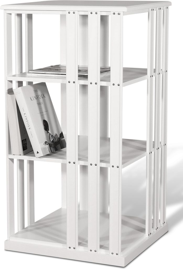 En klassisk och tidlös karusellhylla, eller "boksnurra" som den också kallas för. Bokhyllan har 3 hyllplan för praktisk förvaring och hela hyllan är tillverkad av trä i vitlackad finish. Boksnurran passar perfekt in på flera olika platser i hemmet och är det perfekta valet att fylla med prydnader och litteratur. Boksnurran är roterbar.