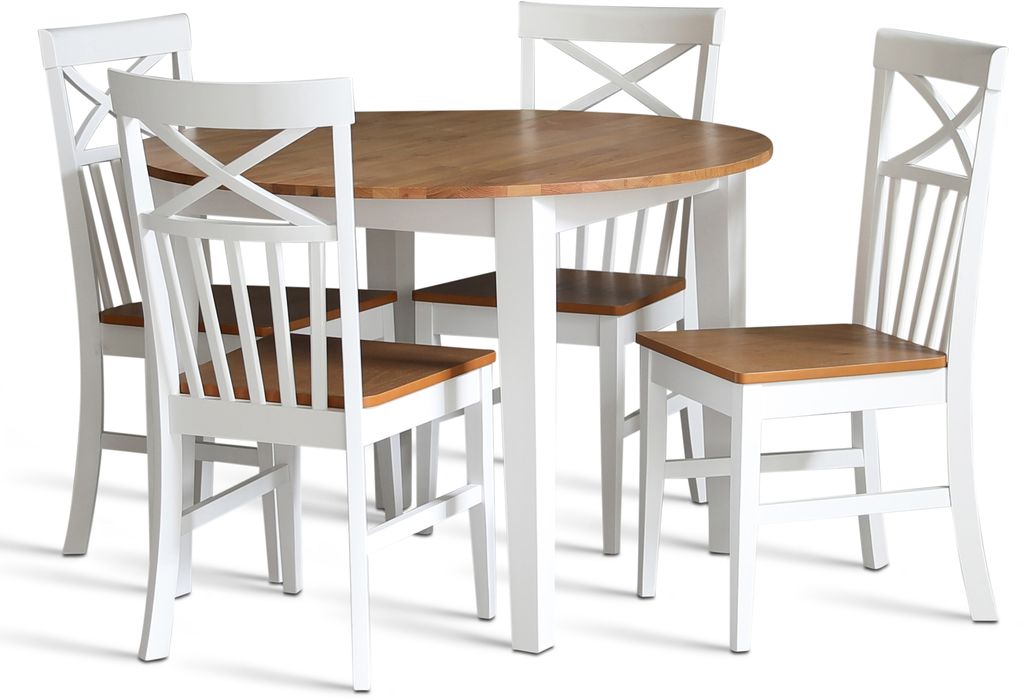 Beskrivning av Nidingen vit stol med brunbetsad eksits