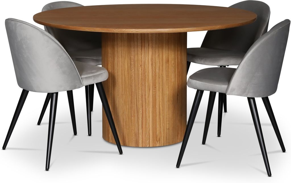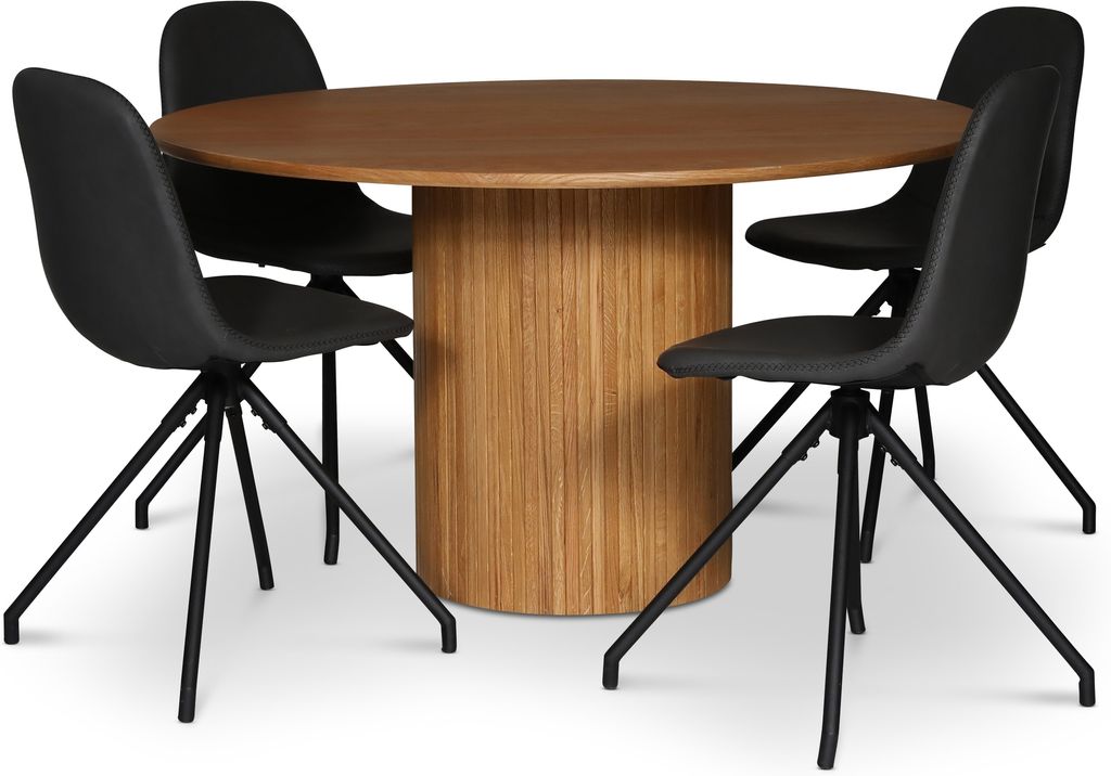 Nova är en serie exklusiva bord i olika utföranden av ekfanér, både oljade, svarta och whitewash finns att välja på. Även varianter i valnötsfanér finns att tillgå. Stabila runda cylinderformade underreden och en mjuk formad kant på toppskivan. Kombinera gärna med några av våra stolar för en komplett matgrupp.