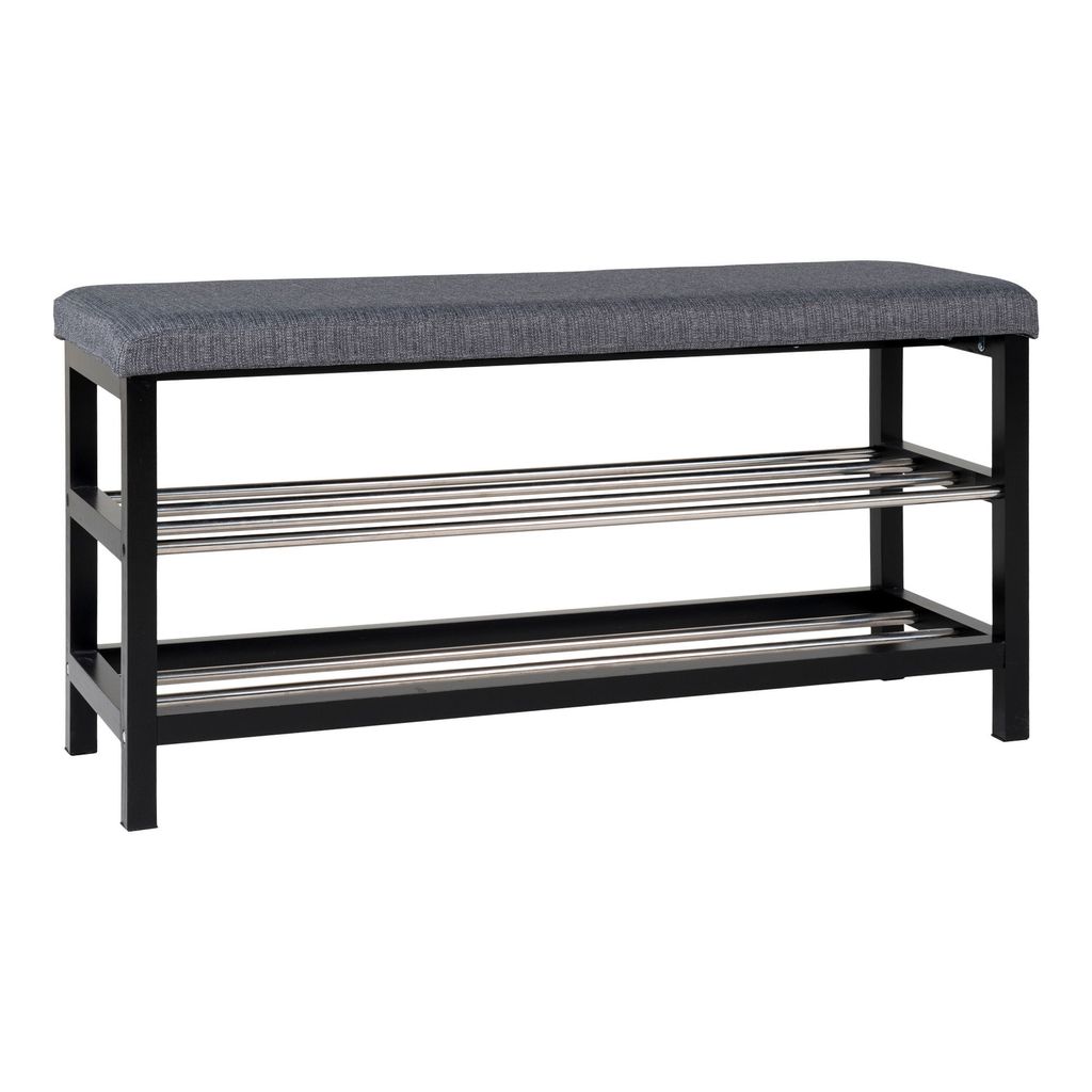 Bänk med dyna och 2 hyllplan, grå med svarta ben, 100x34x50