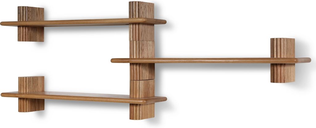 Posh är en möbelserie av svensk design, hög kvalitet på material och nutida former. Massiva trästavar som utgör grunden till hela Posh-serien. Hyllan består av 3 sektioner som går att bygga i olika konstellationer, antingen till en enhet som bilden visar eller som tre separata hyllor. Väggfäste ingår. Obs! Denna produkt behöver monteras i bärande material, exempelvis en träregel.
