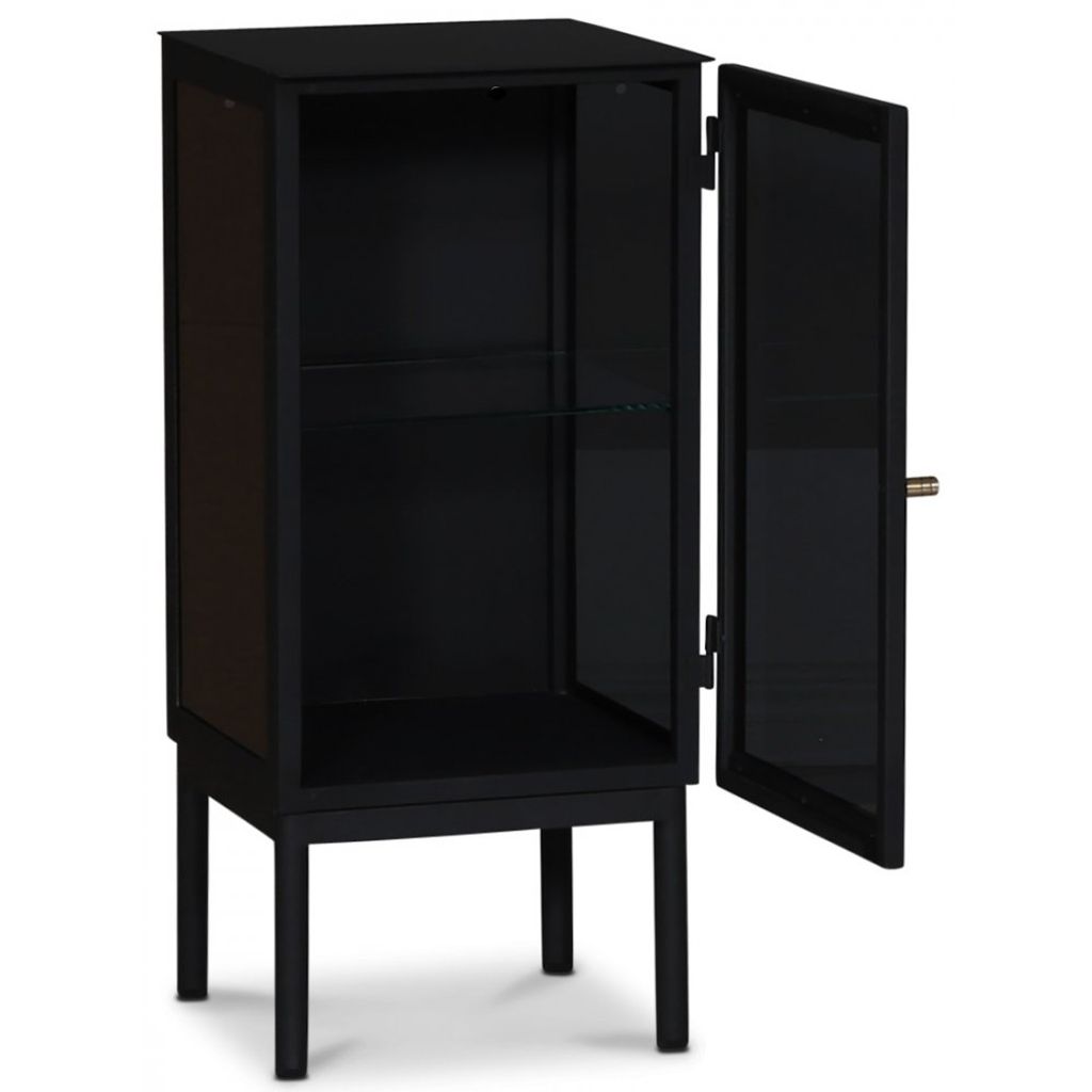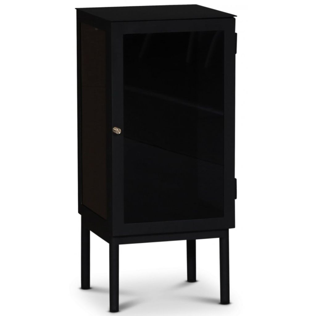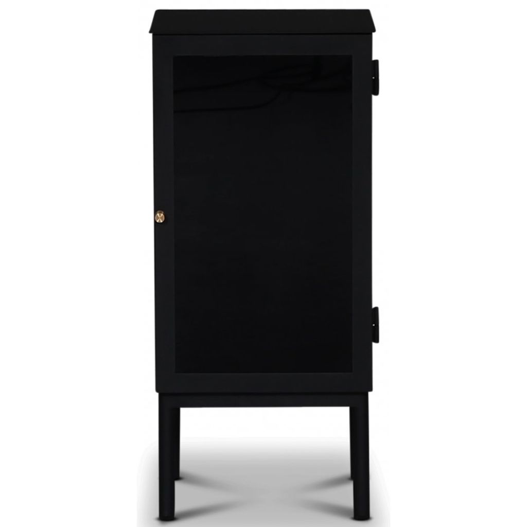 Revel är en av våra största förvaringsserier i plåt. Sandlackad plåt ger en matt yta som smälter in i alla miljöer i hemmet. Tonat glas med en mässingsknopp som handtag. Justerbar glashylla ingår. Detta är ett högerställt sängbord, dvs. dörren är högerhängd, men det finns även som vänsterhängd.