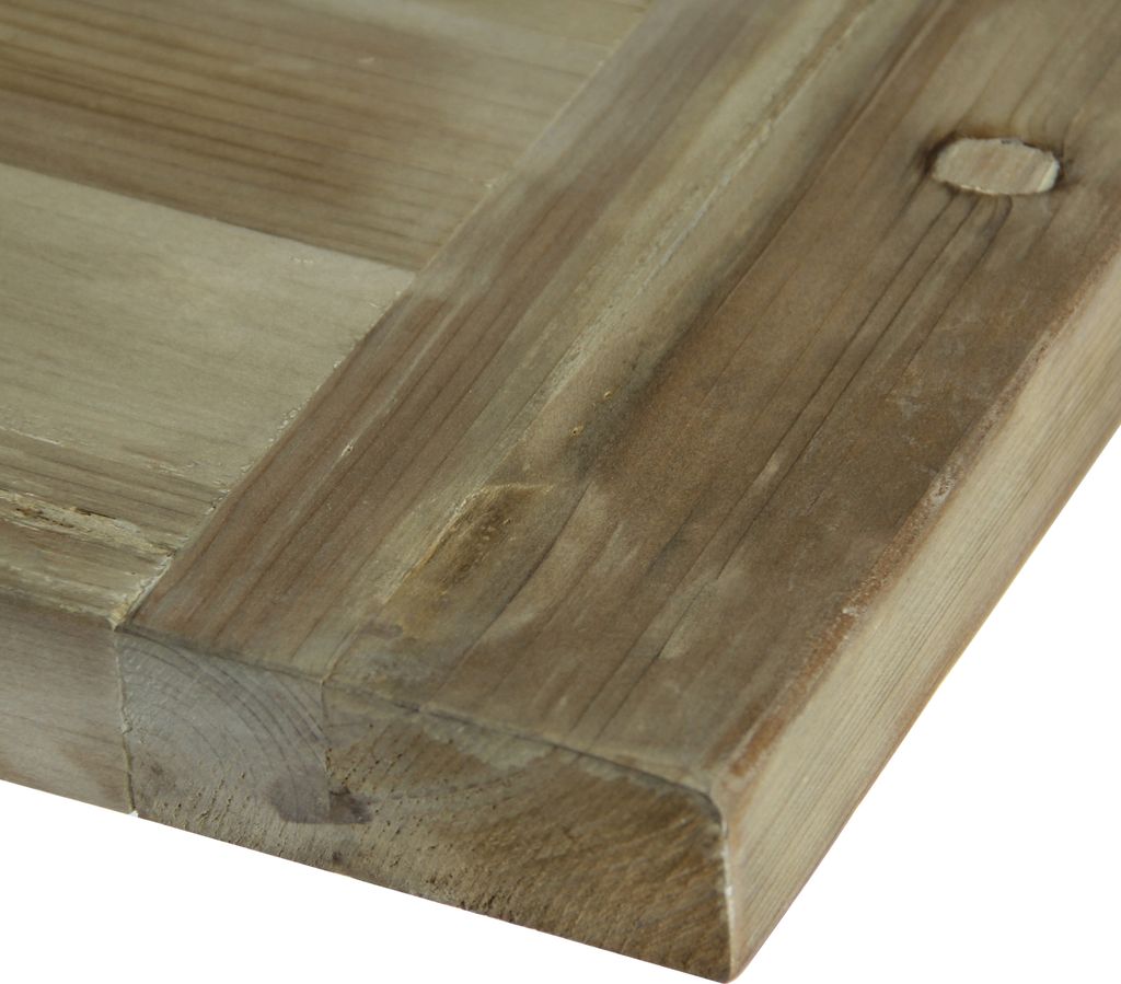 Bordet är tillverkat av återvunnen furu som har färgskiftningar, gropar, sprickor och ojämnheter för att tillsammans med ett gediget hantverk skapa möbelns katraktär och unika värde.