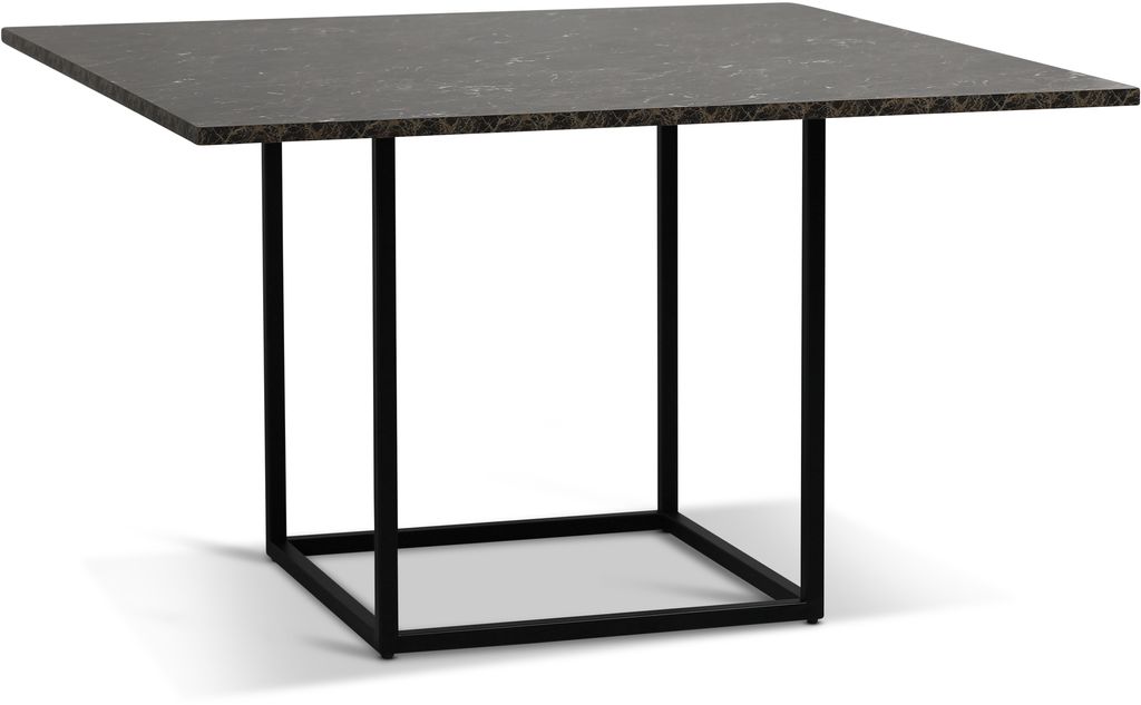 Sintorp är ett designat matbord som tål tuffa tag tack vare den exklusiva laminerade toppskivan i brun marmor, men samtidigt gör bordet inget avkall på design och trend. Ett stilrent svartlackat metallunderrede gör bordet väldigt stabilt och tidstypiskt.