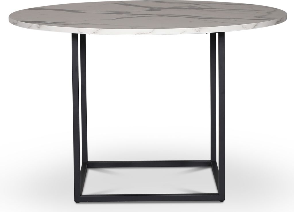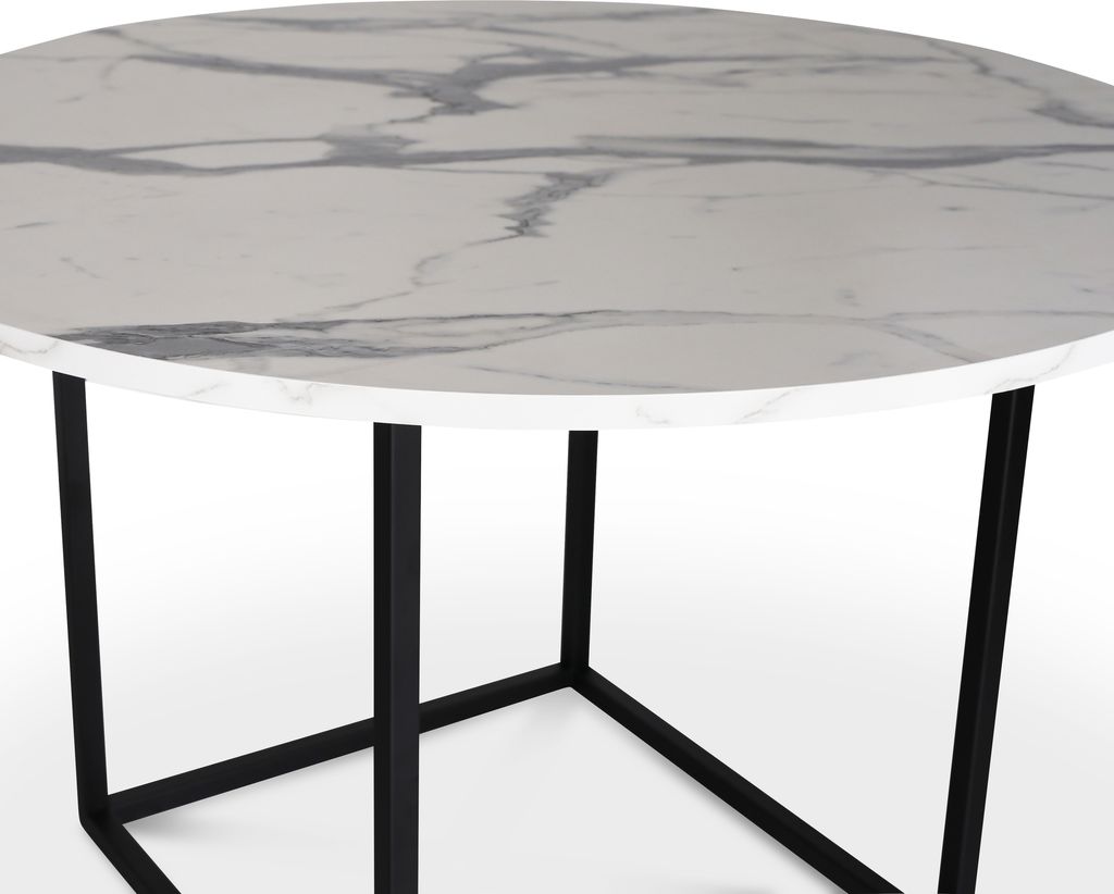Sintorp är ett designat matbord som tål tuffa tag tackvare den vita marmor laminerade toppskivan men samtidigt gör bordet inget avkall på design och trend. Ett stilrent svartlackat metallunderrede gör bordet väldigt stabilt och tidstypiskt.