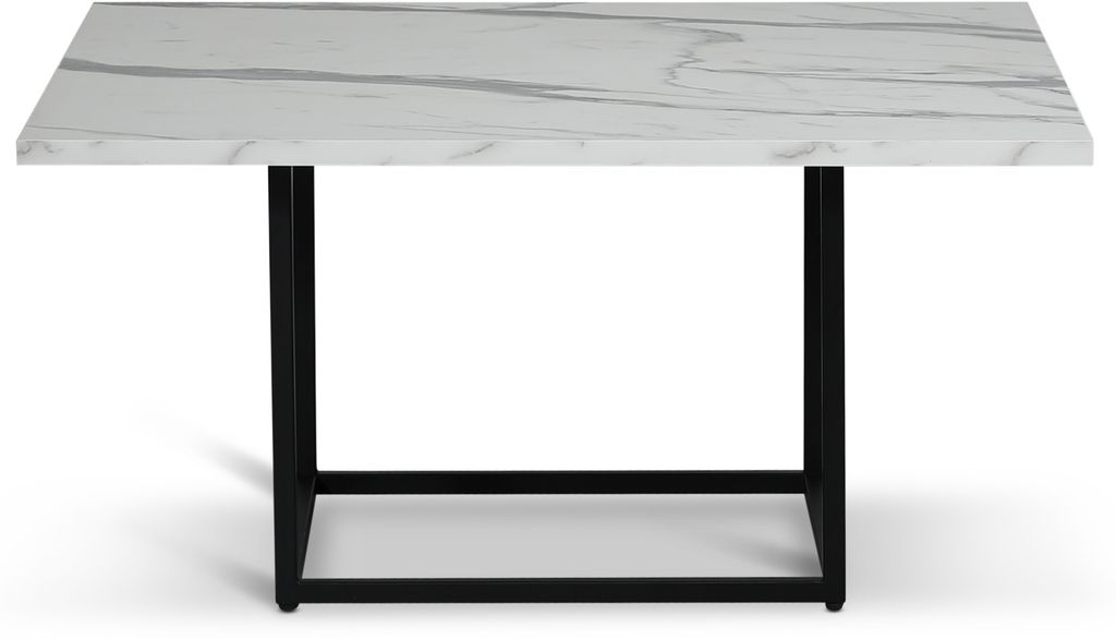 Sintorp är ett designat soffbord som tål tuffa tag tack vare den exklusiva laminerade toppskivan i vitt marmor utförande, men samtidigt gör bordet inget avkall på design och trend. Ett stilrent svartlackat metallunderrede gör bordet väldigt stabilt och tidstypiskt.