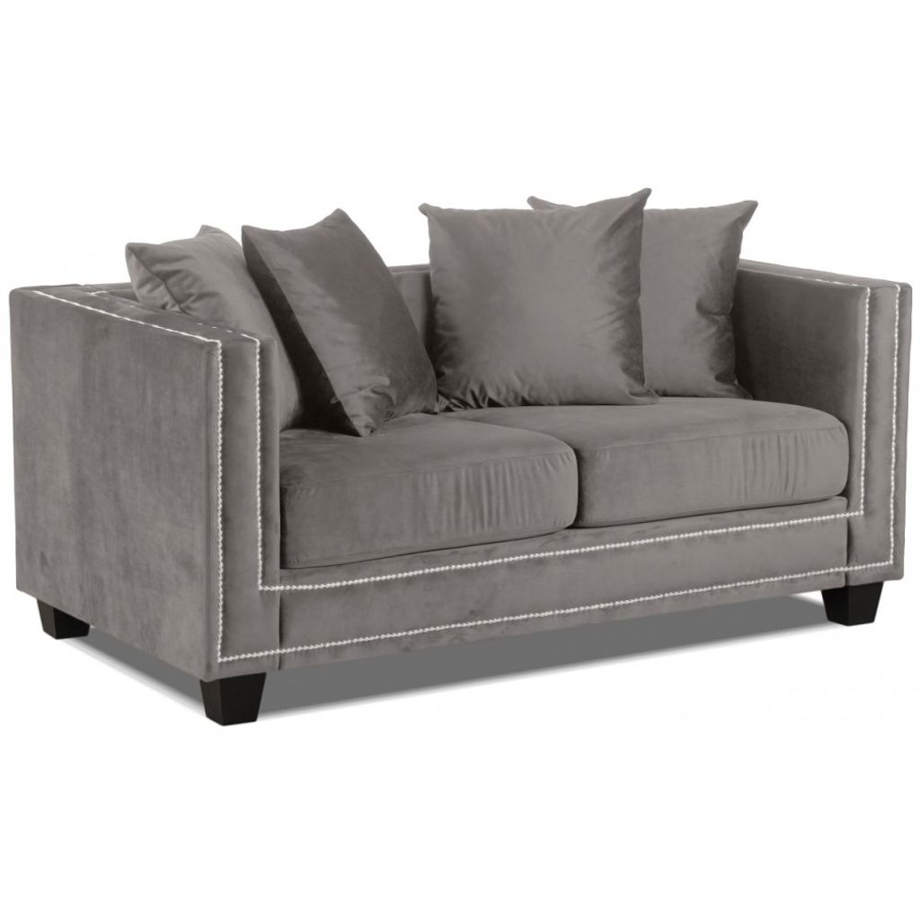 Tempel 2-sits soffa med nitar - Gråbeige (Sammet)