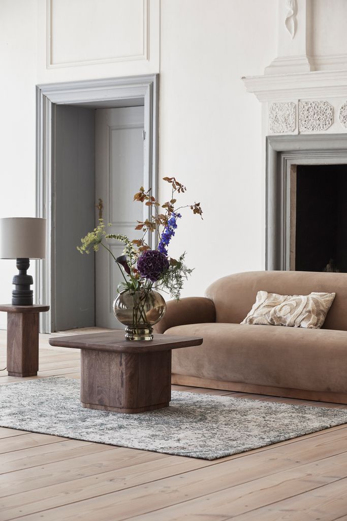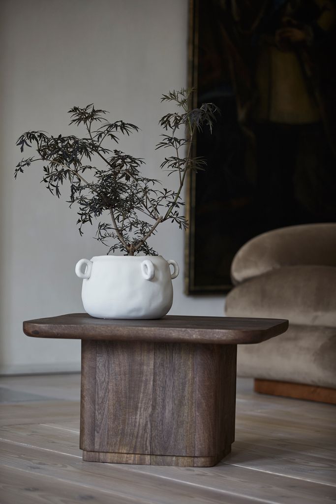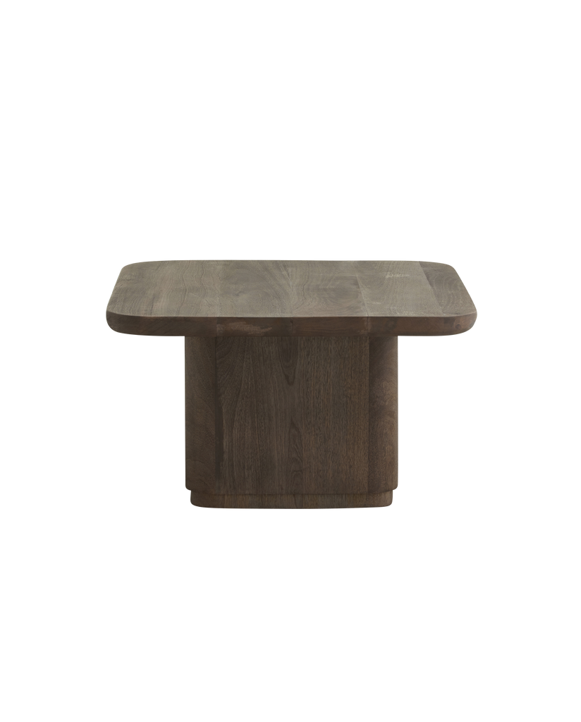 TOKE soffbord är tillverkat av mangoträ i en brunbetsad färg.