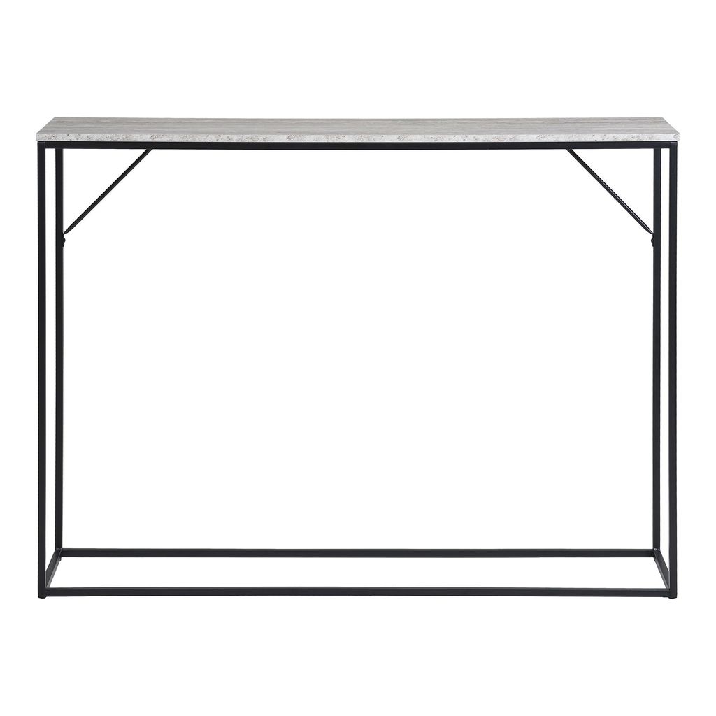 Vita Konsolbord - Konsolbord, 1 hylla, travertinutseende, svart ram 110x26x80 cm