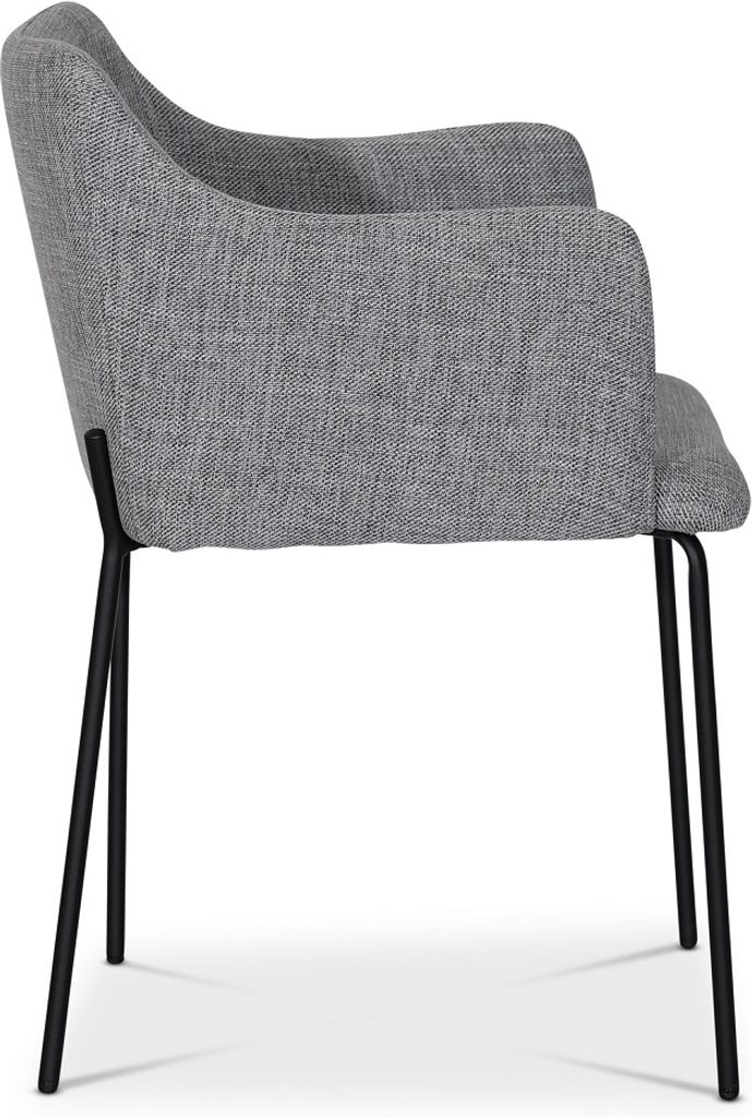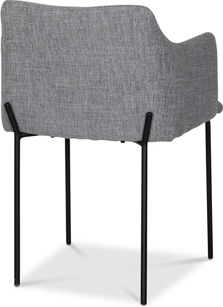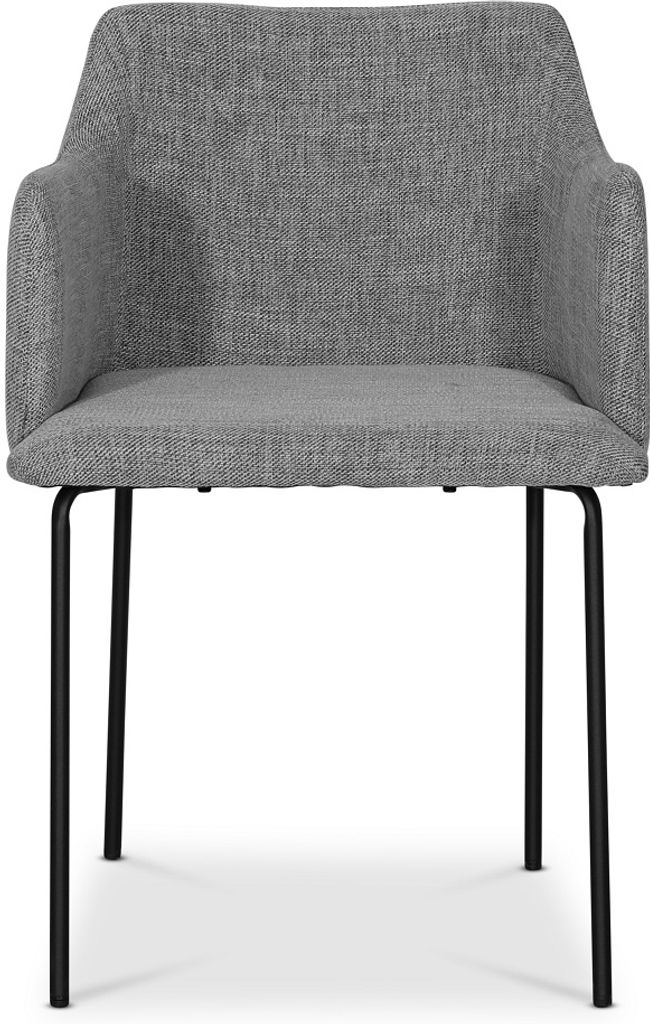 York karmstol i en slank design med svarta stålben. Ljusgrått mjukt tyg. Passar perfekt till både moderna matbord och klassiska matbord.