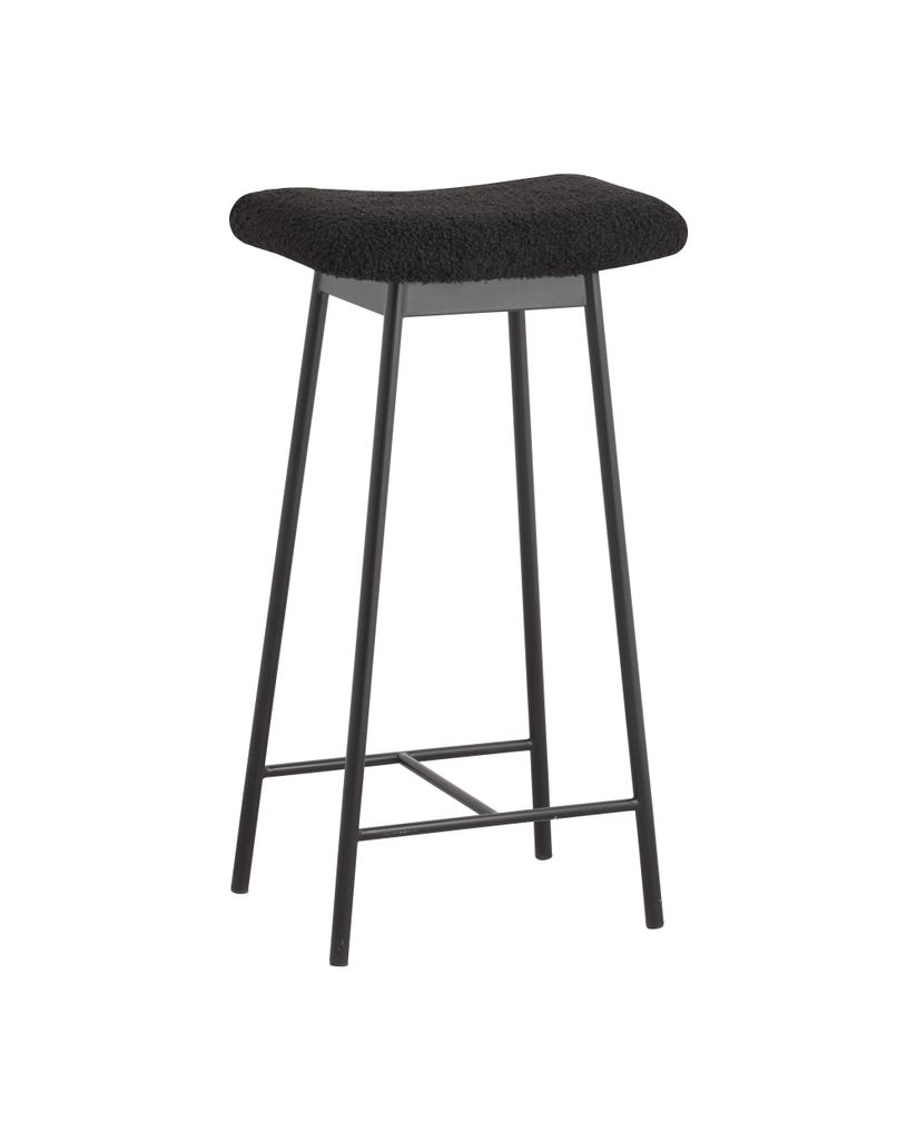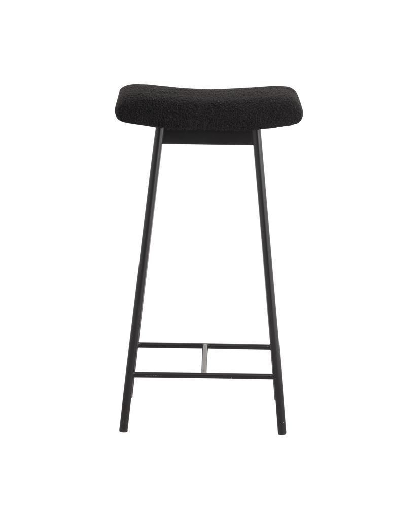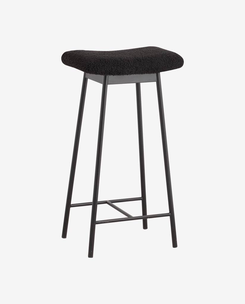 ZALA barstol har en stadig stomme i järn med en klädd sits. Klädseln är tillverkad i mjukt teddy-material som ger en fluffig och inbjudande känsla. Barpallen är dessutom utrustad med fotstöd i järn för extra komfort.